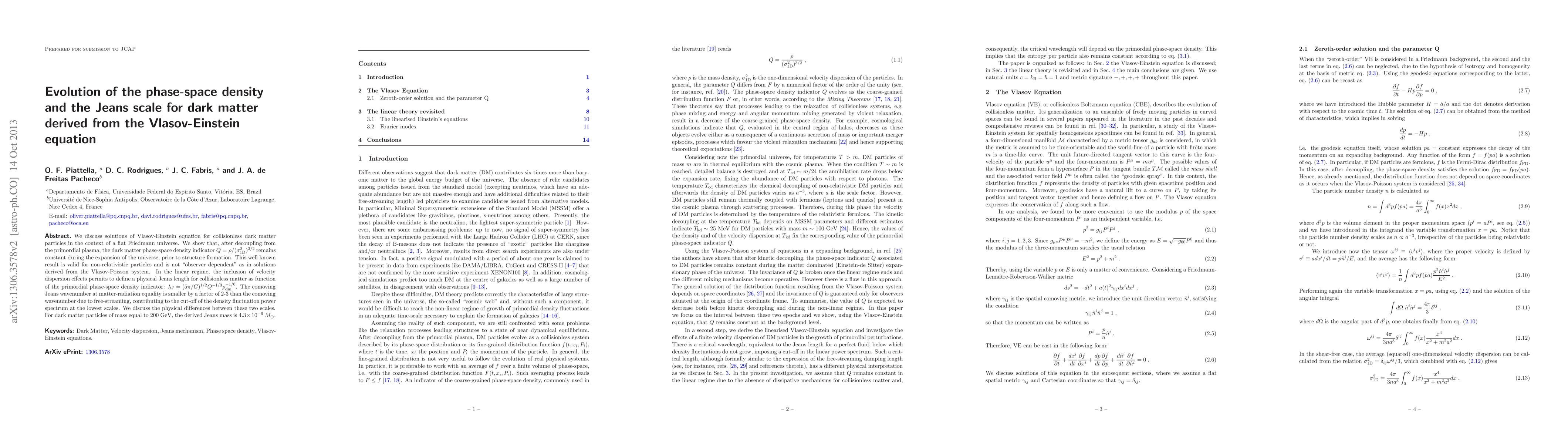 This paper explores solutions of the Vlasov-Einstein equation for dark matter in a flat Friedmann universe, demonstrating that the phase-space density remains constant post-decoupling. It introduces a physical Jeans length for collisionless dark matter, highlighting differences between this scale and the free-streaming scale, and derives a Jeans mass of 4.3 x 10^(-6) solar masses for 200 GeV dark matter particles.