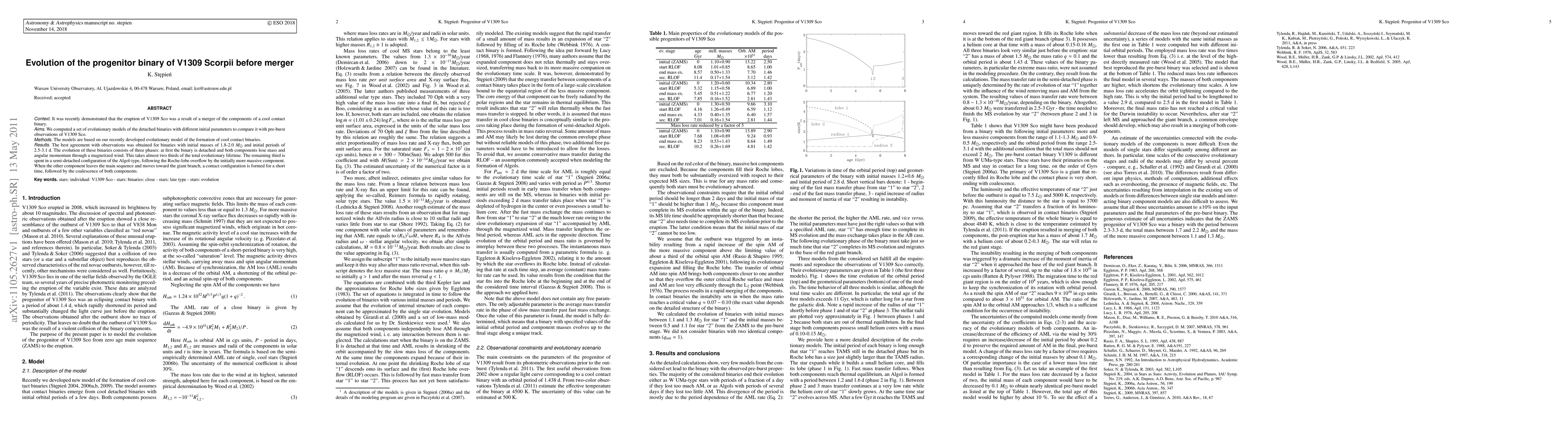 It was recently demonstrated that the eruption of V1309 Sco was a result of a merger of the components of a cool contact binary. We computed a set of evolutionary models of the detached binaries with different initial parameters to compare it with pre-burst observations of V1309 Sco. The models are based on our recently developed evolutionary model of the formation of cool contact binaries. The best agreement with observations was obtained for binaries with initial masses of 1.8-2.0 solar masses and initial periods of 2.5-3.1 d. The evolution of these binaries consists of three phases: at first the binary is detached and both components lose mass and angular momentum through a magnetized wind. This takes almost two thirds of the total evolutionary lifetime. The remaining third is spent in a semi-detached configuration of the Algol-type, following the Roche-lobe overflow by the initially more massive component. When the other component leaves the main sequence and moves toward the giant branch, a contact configuration is formed for a short time, followed by the coalescence of both components.