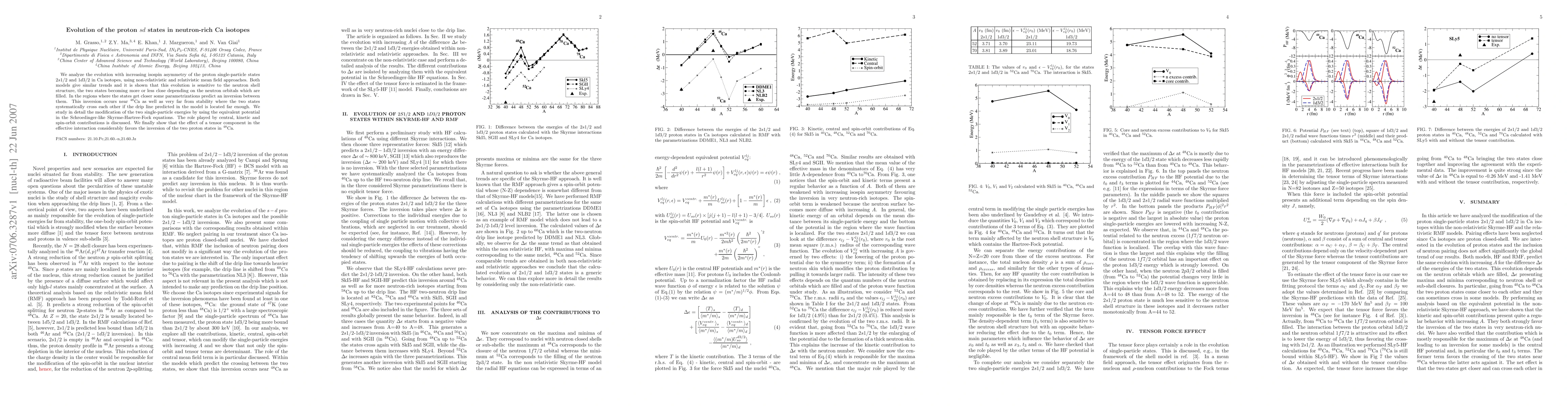 This paper investigates the evolution of proton single-particle states 2s1/2 and 1d3/2 in neutron-rich calcium isotopes, revealing that their proximity and potential inversion are influenced by neutron shell structure and the effective interaction, particularly favoring inversion near $^{48}$Ca. Both non-relativistic and relativistic models show similar trends, highlighting the role of central, kinetic, and spin-orbit contributions.