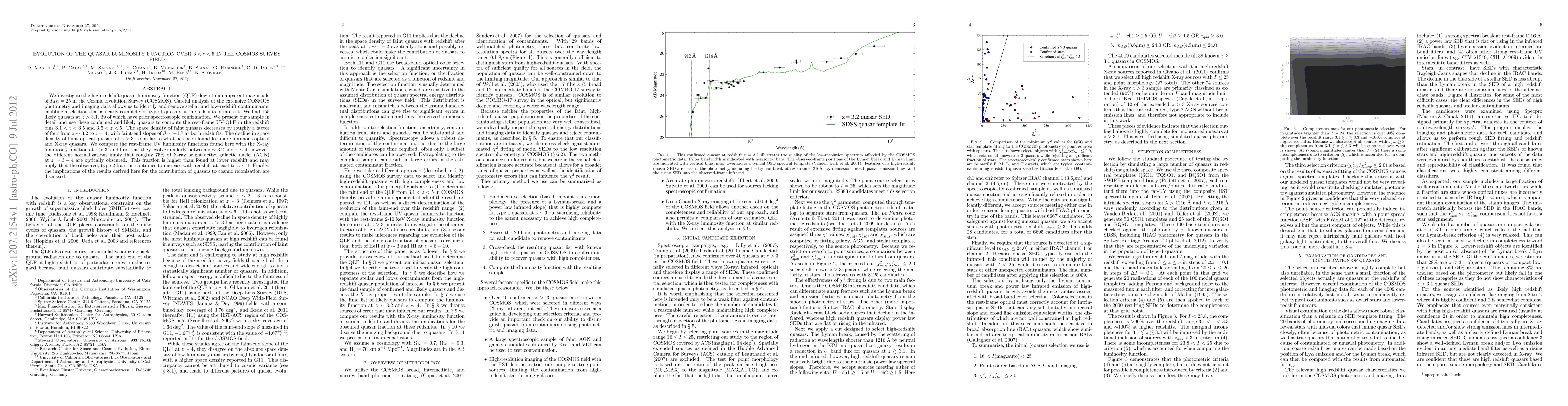 This study examines the quasar luminosity function in the redshift range 3 < z < 5 using COSMOS survey data, finding a significant decrease in space density of faint quasars from z \sim 3.2 to z \sim 4. The results suggest that quasars contribute similarly to cosmic reionization and that a majority of X-ray bright AGNs at these redshifts are optically obscured.