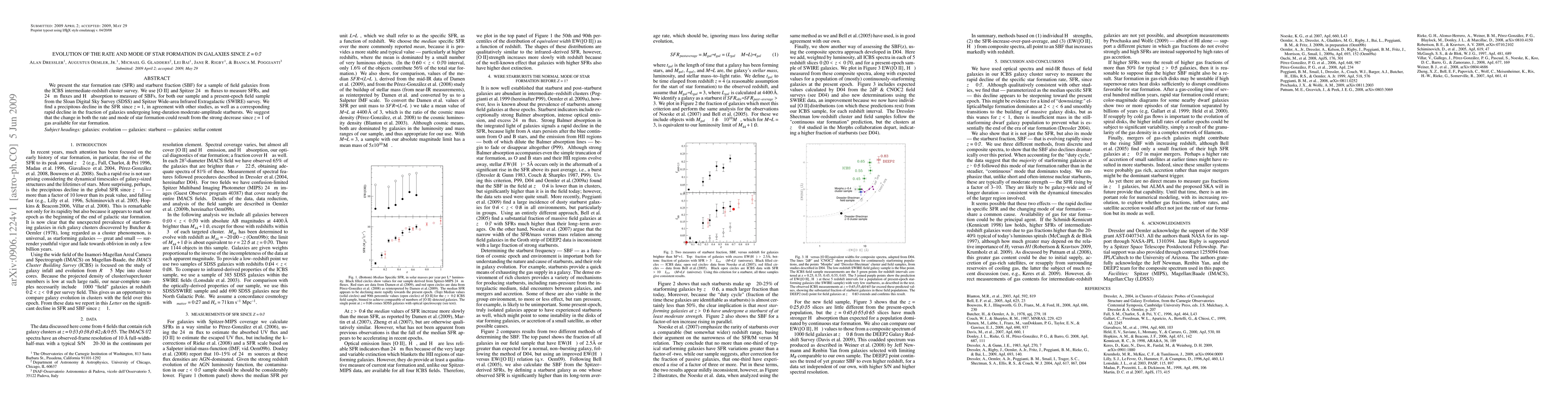 We present the star formation rate (SFR) and starburst fraction (SBF) for a sample of field galaxies from the ICBS intermediate-redshift cluster survey. We use [O II] and Spitzer 24 micron fluxes to measure SFRs, and 24 micron fluxes and H-delta absorption to measure of SBFs, for both our sample and a present-epoch field sample from the Sloan Digital Sky Survey (SDSS) and Spitzer Wide-area Infrared Extragalactic (SWIRE) survey. We find a precipitous decline in the SFR since z=1, in agreement with other studies, as well as a corresponding rapid decline in the fraction of galaxies undergoing long-duration moderate-amplitude starbursts. We suggest that the change in both the rate and mode of star formation could result from the strong decrease since z=1 of gas available for star formation.