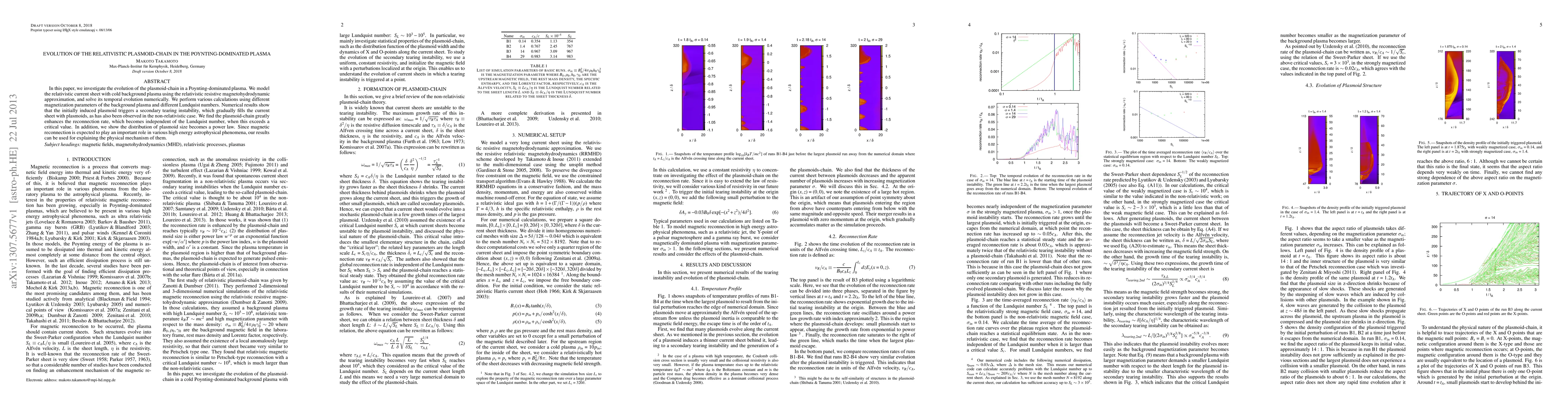 In this paper, we investigate the evolution of the plasmoid-chain in a Poynting-dominated plasma. We model the relativistic current sheet with cold background plasma using the relativistic resistive magnetohydrodynamic approximation, and solve its temporal evolution numerically. We perform various calculations using different magnetization parameters of the background plasma and different Lundquist numbers. Numerical results show that the initially induced plasmoid triggers a secondary tearing instability, which gradually fills the current sheet with plasmoids, as has also been observed in the non-relativistic case. We find the plasmoid-chain greatly enhances the reconnection rate, which becomes independent of the Lundquist number, when this exceeds a critical value. In addition, we show the distribution of plasmoid size becomes a power law. Since magnetic reconnection is expected to play an important role in various high energy astrophysical phenomena, our results can be used for explaining the physical mechanism of them.