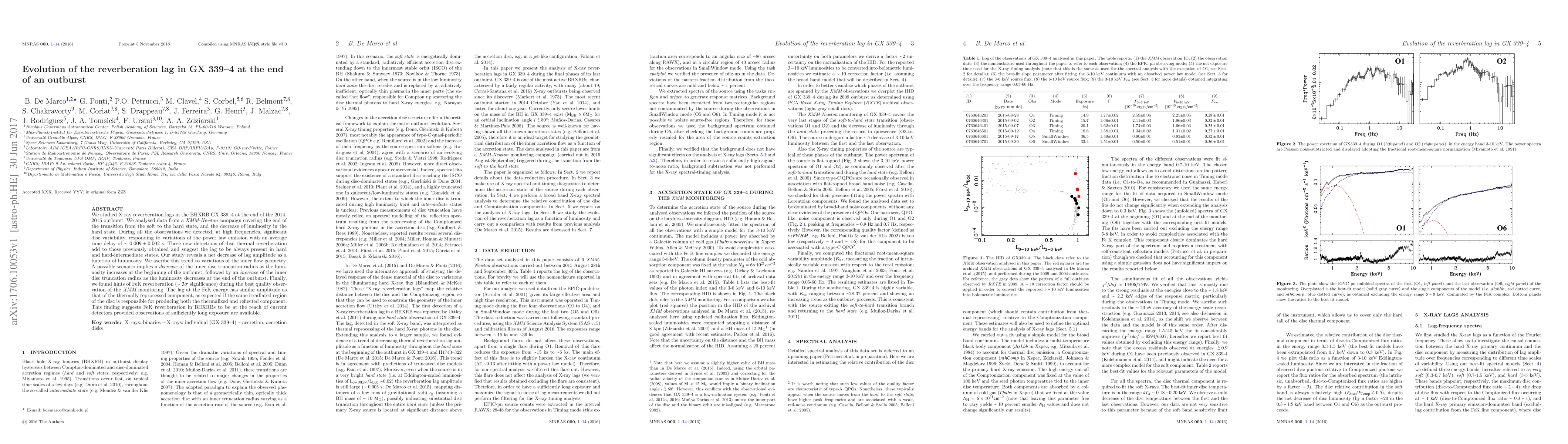 We studied X-ray reverberation lags in the BHXRB GX 339-4 at the end of the 2014-2015 outburst. We analysed data from a XMM-Newton campaign covering the end of the transition from the soft to the hard state, and the decrease of luminosity in the hard state. During all the observations we detected, at high frequencies, significant disc variability, responding to variations of the power law emission with an average time delay of $\sim0.009\pm 0.002$ s. These new detections of disc thermal reverberation add to those previously obtained and suggest the lag to be always present in hard and hard-intermediate states. Our study reveals a net decrease of lag amplitude as a function of luminosity. We ascribe this trend to variations of the inner flow geometry. A possible scenario implies a \emph{decrease} of the inner disc truncation radius as the luminosity increases at the beginning of the outburst, followed by an \emph{increase} of the inner disc truncation radius as the luminosity decreases at the end of the outburst. Finally, we found hints of FeK reverberation ($\sim3\sigma$ significance) during the best quality observation of the XMM monitoring. The lag at the FeK energy has similar amplitude as that of the thermally reprocessed component, as expected if the same irradiated region of the disc is responsible for producing both the thermalized and reflected component. This finding suggests FeK reverberation in BHXRBs to be at the reach of current detectors provided observations of sufficiently long exposure are available.