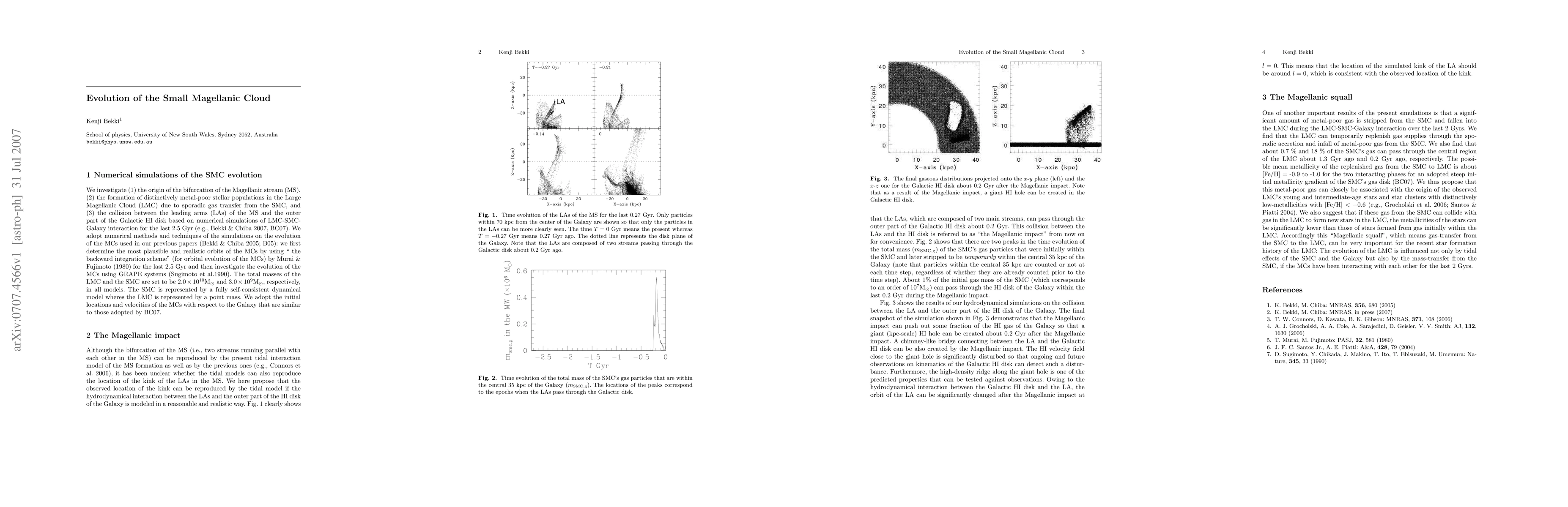 This paper uses N-body simulations to trace the evolution of the Small Magellanic Cloud (SMC) over the last 2.5 Gyr, revealing interactions with the Milky Way that led to the formation of the Magellanic stream and the creation of giant HI holes and chimney-like structures in the Galactic disk. It also highlights the transfer of metal-poor gas from the SMC to the Large Magellanic Cloud (LMC), which may be linked to the origin of LMC's low-metallicity stars and star clusters.