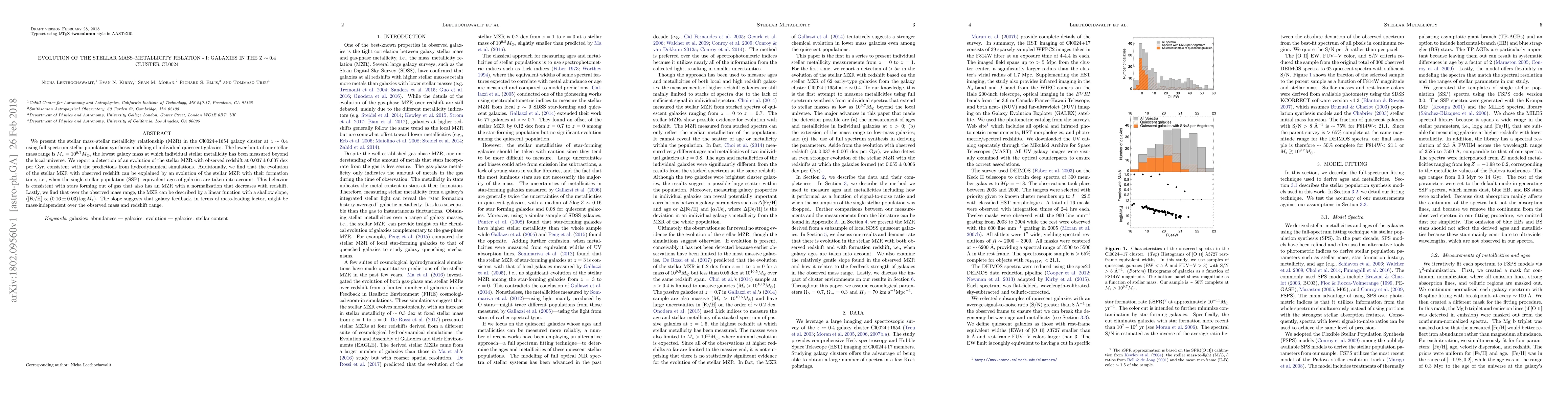 This study examines how galaxies in a cluster at redshift z~0.4 have evolved over time, finding that their stellar mass-metallicity relation changes with both redshift and galaxy age.