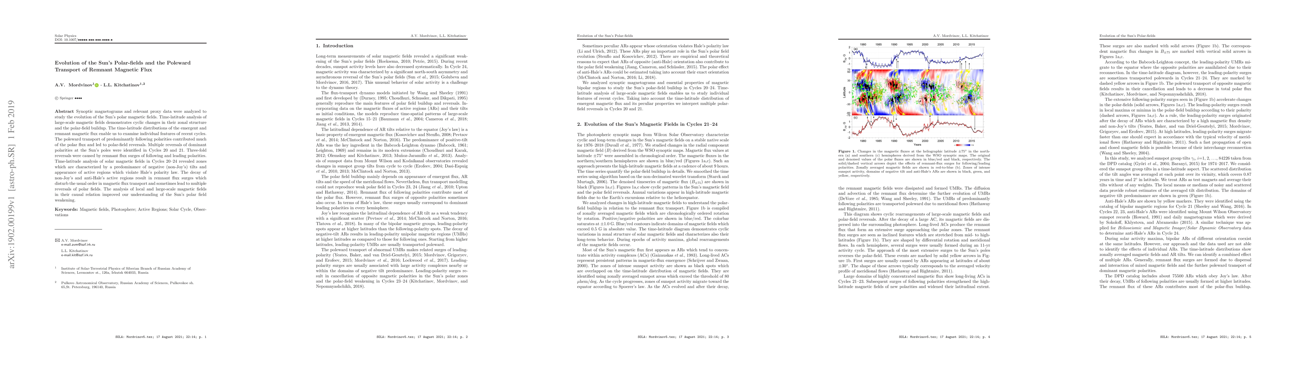 This paper analyzes the evolution of the Sun's polar magnetic fields and the poleward transport of remnant magnetic flux, revealing multiple reversals and deviations from typical magnetic flux transport patterns, contributing to a deeper understanding of the Sun's polar field weakening.