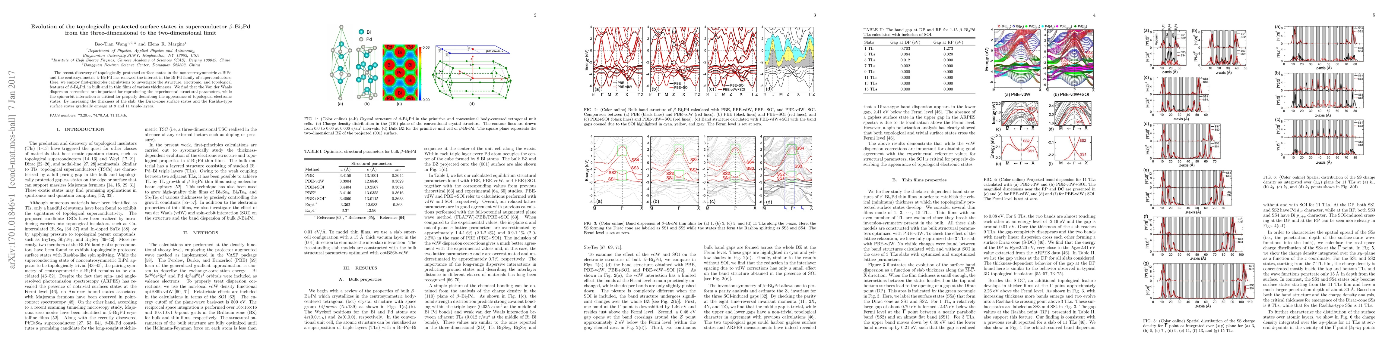 This paper investigates the topologically protected surface states in $\beta$-Bi$_{2}$Pd superconductors using first-principles calculations. It finds that Van der Waals corrections and spin-orbit interactions are crucial for accurate electronic structure and topological state emergence, with the Dirac-cone and Rashba-type surface states appearing in thin films at specific layer thicknesses.