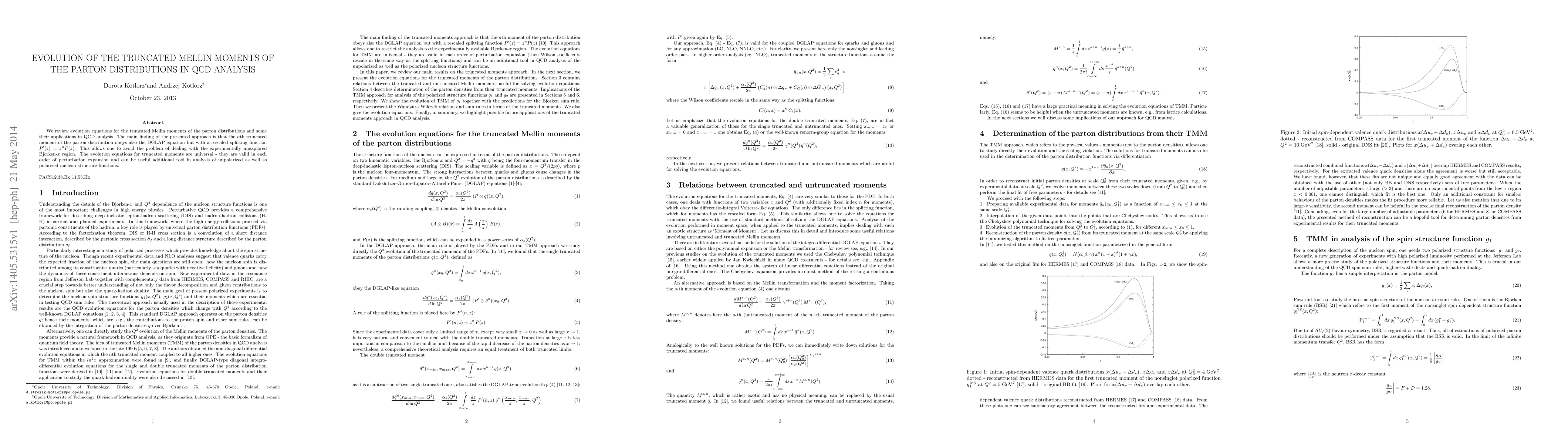 Summary: This paper reviews evolution equations for truncated Mellin moments of parton distributions in QCD analysis, revealing that these moments follow the DGLAP equation with a modified splitting function, thus circumventing issues in the unexplored Bjorken-$x$ region. The universal evolution equations for truncated moments serve as a valuable tool for analyzing both unpolarized and polarized nucleon structure functions.