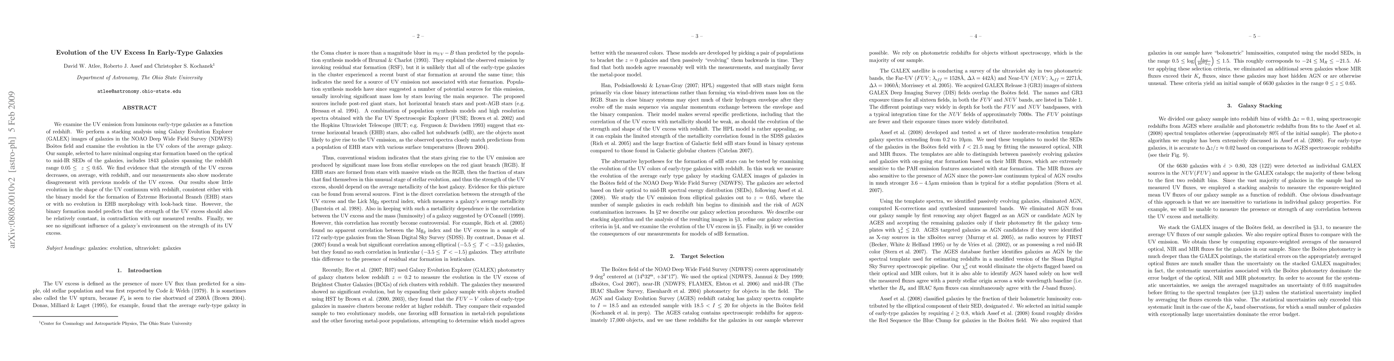 This study investigates the UV emission of early-type galaxies across various redshifts, revealing a decrease in UV excess strength with increasing redshift, while showing little evolution in the UV continuum shape. The findings challenge the binary model for Extreme Horizontal Branch star formation.