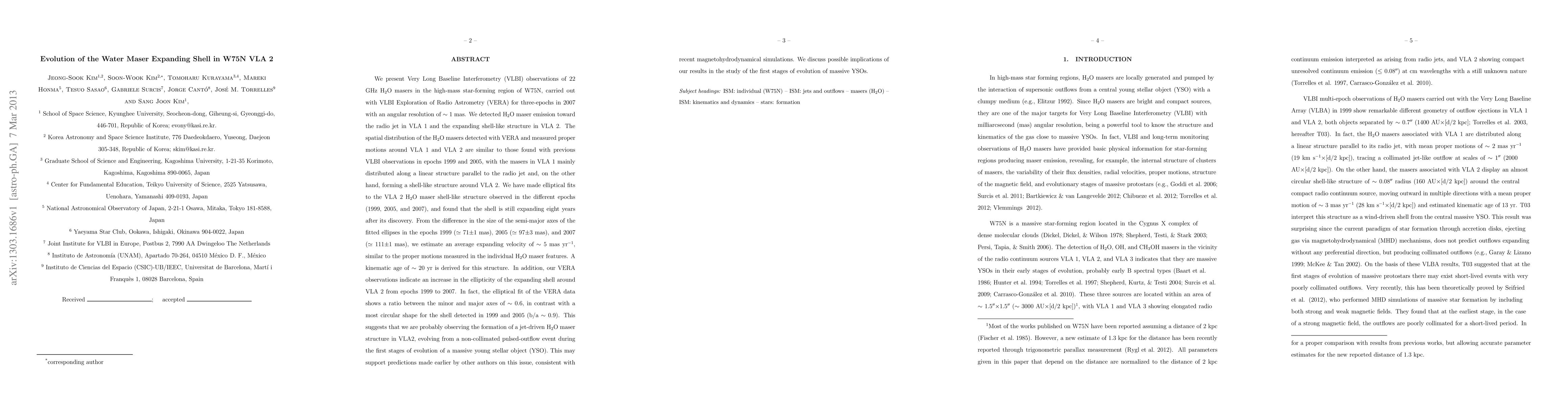 We present Very Long Baseline Interferometry (VLBI) observations of 22 GHz H$_2$O masers in the high-mass star-forming region of \objectname{W75N}, carried out with VLBI Exploration of Radio Astrometry (VERA) for three-epochs in 2007 with an angular resolution of $\sim$ 1 mas. We detected H$_2$O maser emission toward the radio jet in VLA 1 and the expanding shell-like structure in VLA 2. We have made elliptical fits to the VLA 2 H$_2$O maser shell-like structure observed in the different epochs (1999, 2005, and 2007), and found that the shell is still expanding eight years after its discovery. From the difference in the size of the semi-major axes of the fitted ellipses in the epochs 1999 ($\simeq$ 71$\pm$1 mas), 2005 ($\simeq$ 97$\pm$3 mas), and 2007 ($\simeq$ 111$\pm$1 mas), we estimate an average expanding velocity of $\sim$ 5 mas yr$^{-1}$, similar to the proper motions measured in the individual H$_2$O maser features. A kinematic age of $\sim$ 20 yr is derived for this structure. In addition, our VERA observations indicate an increase in the ellipticity of the expanding shell around VLA 2 from epochs 1999 to 2007. In fact, the elliptical fit of the VERA data shows a ratio between the minor and major axes of $\sim$ 0.6, in contrast with a most circular shape for the shell detected in 1999 and 2005 (b/a $\sim$ 0.9). This suggests that we are probably observing the formation of a jet-driven H$_2$O maser structure in VLA2, evolving from a non-collimated pulsed-outflow event during the first stages of evolution of a massive young stellar object (YSO). This may support predictions made earlier by other authors on this issue, consistent with recent magnetohydrodynamical simulations. We discuss possible implications of our results in the study of the first stages of evolution of massive YSOs.