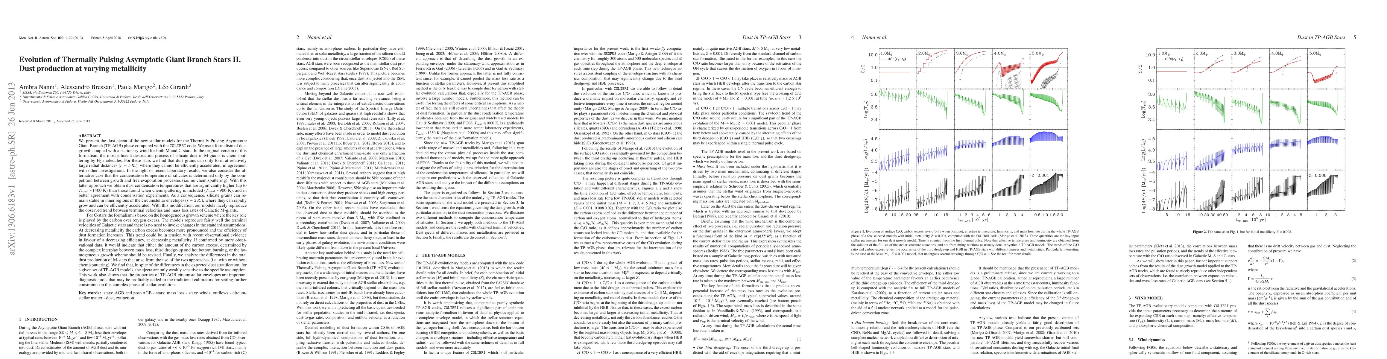 This paper investigates dust production in Thermally Pulsing Asymptotic Giant Branch stars using new stellar models, finding that silicate dust formation is more efficient without chemisputtering, leading to higher condensation temperatures and stable grains in inner regions. The models show good agreement with observed Galactic M-giants and suggest increased dust formation efficiency at lower metallicity.