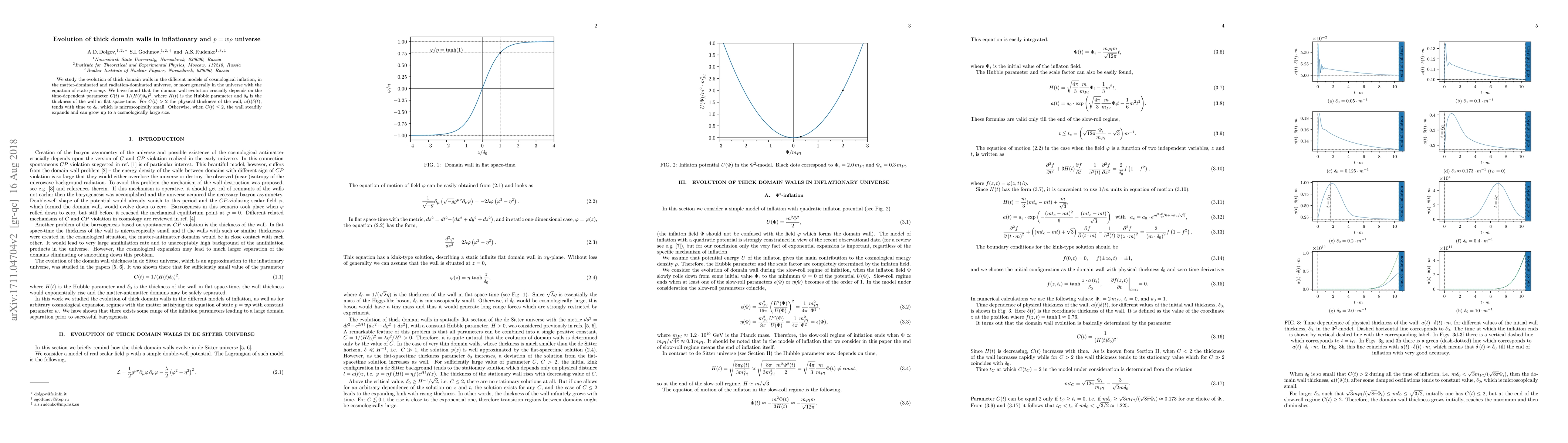 We study the evolution of thick domain walls in the different models of cosmological inflation, in the matter-dominated and radiation-dominated universe, or more generally in the universe with the equation of state $p=w\rho$. We have found that the domain wall evolution crucially depends on the time-dependent parameter $C(t)=1/(H(t)\delta_0)^2$, where $H(t)$ is the Hubble parameter and $\delta_0$ is the thickness of the wall in flat space-time. For $C(t)>2$ the physical thickness of the wall, $a(t)\delta(t)$, tends with time to $\delta_0$, which is microscopically small. Otherwise, when $C(t) \leq 2$, the wall steadily expands and can grow up to a cosmologically large size.