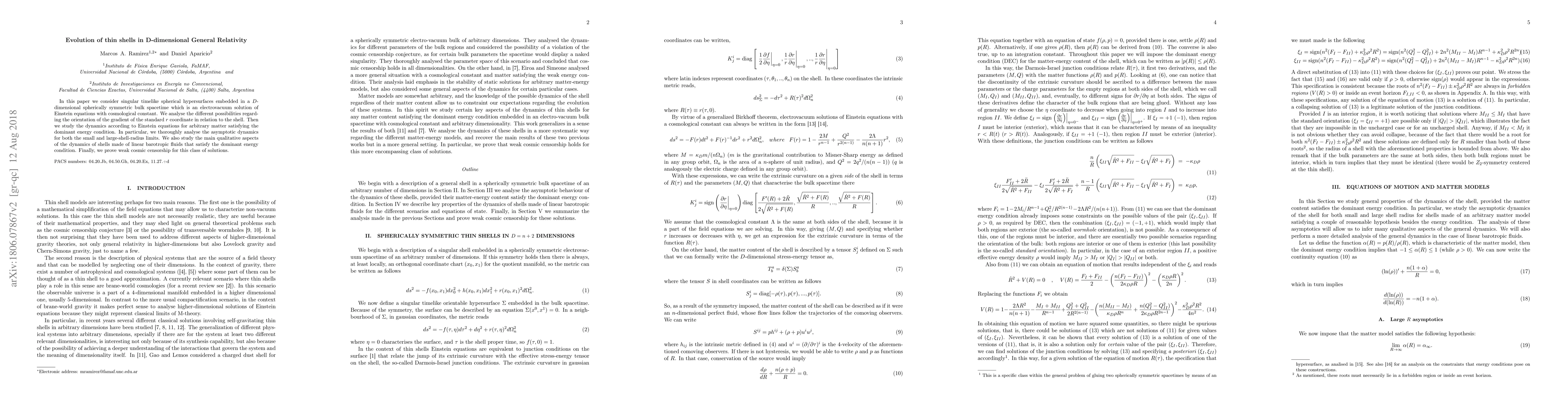 This paper studies the evolution of thin shells in D-dimensional General Relativity, analyzing their dynamics for various types of matter and proving weak cosmic censorship.