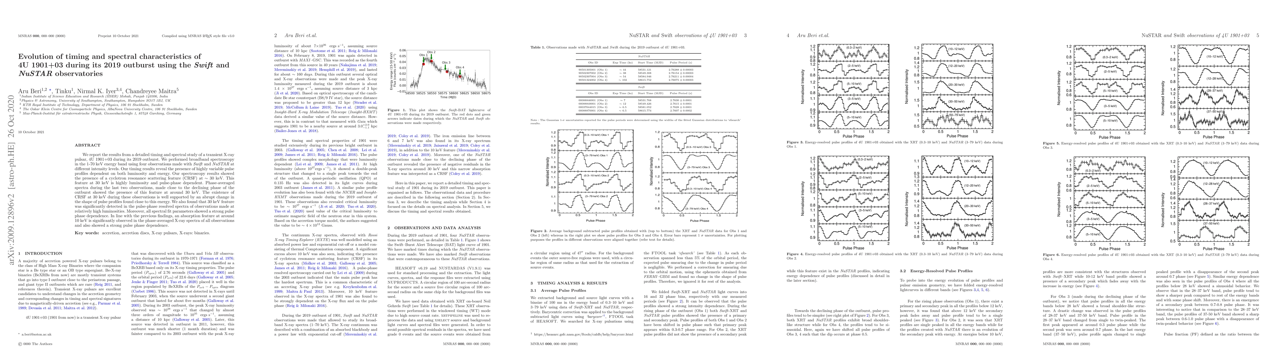 Scientists studied 4U 1901+03 during its 2019 outburst using Swift and NuSTAR observatories, revealing a cyclotron resonance scattering feature at 30 keV that depends on luminosity and pulse phase. The study provides new insights into the timing and spectral characteristics of this transient X-ray pulsar.