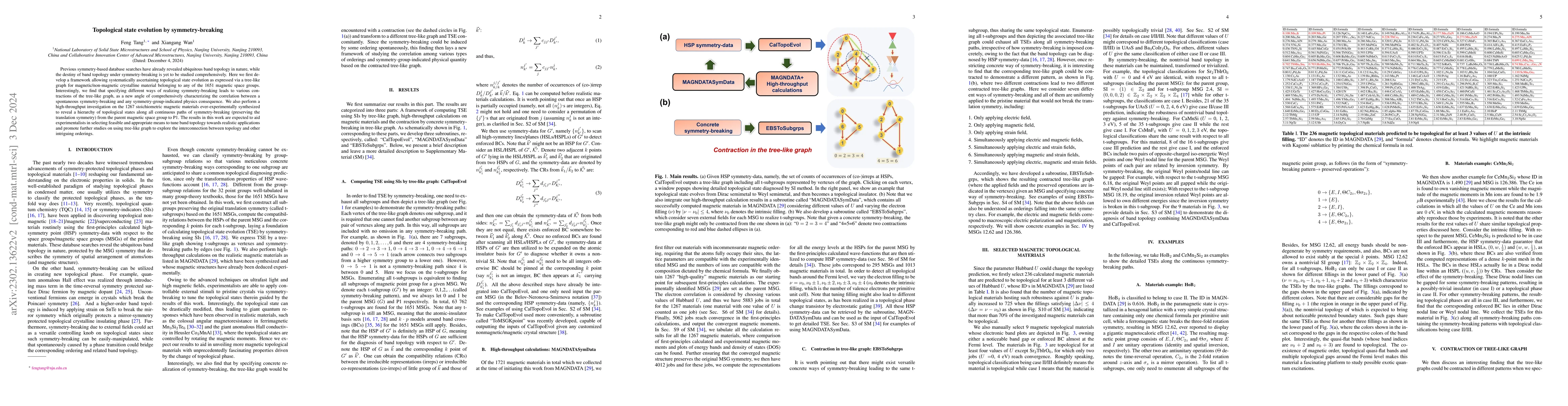 This paper constructs three datasets to track the evolution of topological states in magnetic materials through symmetry-breaking, and performs high-throughput investigations on 1267 synthesized magnetic materials, revealing a hierarchy of topological states. The findings aim to assist in selecting methods to tune topological states for potential applications in memory devices.