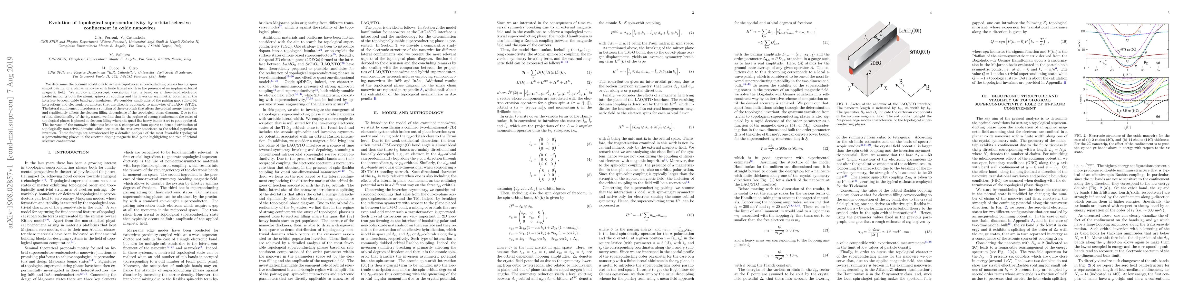 We determine the optimal conditions to achieve topological superconducting phases having spin-singlet pairing for a planar nanowire with finite lateral width in the presence of an in-plane external magnetic field. We employ a microscopic description that is based on a three-band electronic model including both the atomic spin-orbit coupling and the inversion asymmetric potential at the interface between oxide band-gap insulators. We consider amplitudes of the pairing gap, spin-orbit interactions and electronic parameters that are directly applicable to nanowires of LaAlO$_3$-SrTiO$_3$. The lateral confinement introduces a splitting of the $d$-orbitals that alters the orbital energy hierarchy and significantly affects the electron filling dependence of the topological phase diagram. Due to the orbital directionality of the $t_{2g}$-states, we find that in the regime of strong confinement the onset of topological phases is pinned at electron filling where the quasi flat heavy bands start to get populated. The increase of the nanowire thickness leads to a changeover from sparse-to-dense distribution of topologically non-trivial domains which occurs at the cross-over associated to the orbital population inversion. These findings are corroborated by a detailed analysis of the most favorable topological superconducting phases in the electron doping-magnetic field plane highlighting the role of orbital selective confinement.