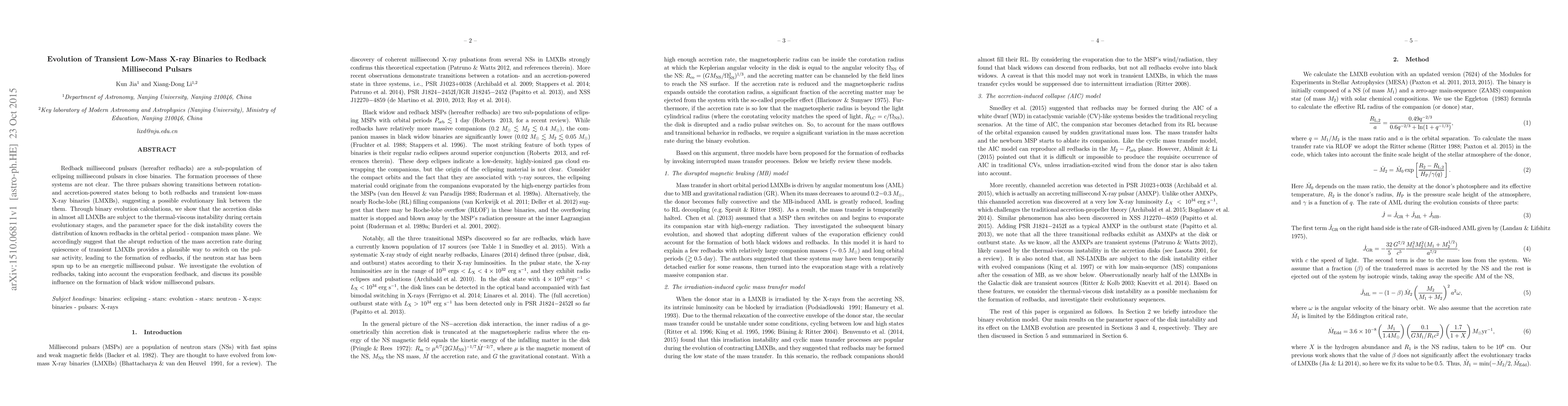 This paper explores the evolutionary pathway from transient low-mass X-ray binaries to redback millisecond pulsars, suggesting that thermal-viscous instability in accretion disks during quiescence can trigger pulsar activity, leading to the formation of redbacks if the neutron star is spun up sufficiently. The study also considers the role of evaporation feedback in the evolution of these systems.