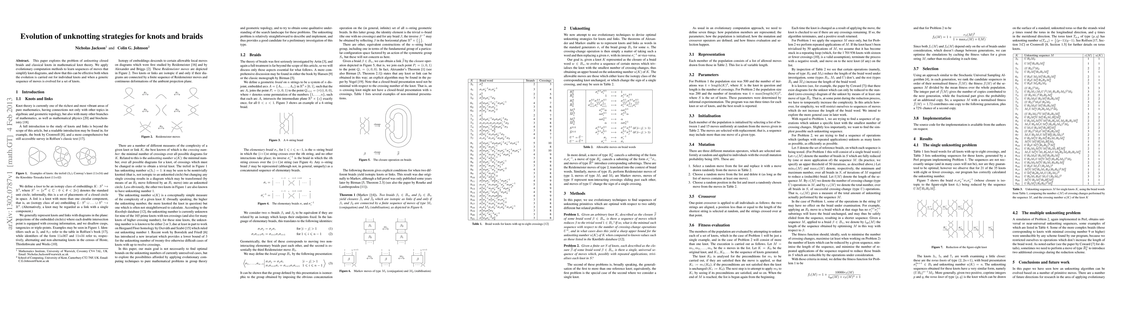 This paper explores the problem of unknotting closed braids and classical knots in mathematical knot theory. We apply evolutionary computation methods to learn sequences of moves that simplify knot diagrams, and show that this can be effective both when the evolution is carried out for individual knots and when a generic sequence of moves is evolved for a set of knots.