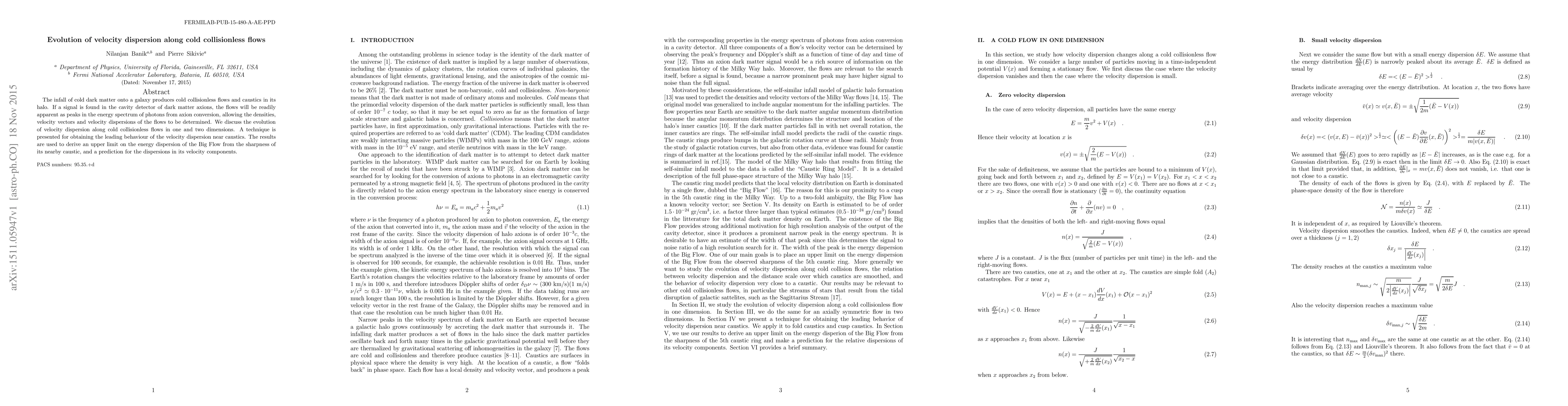 The infall of cold dark matter onto a galaxy produces cold collisionless flows and caustics in its halo. If a signal is found in the cavity detector of dark matter axions, the flows will be readily apparent as peaks in the energy spectrum of photons from axion conversion, allowing the densities, velocity vectors and velocity dispersions of the flows to be determined. We discuss the evolution of velocity dispersion along cold collisionless flows in one and two dimensions. A technique is presented for obtaining the leading behaviour of the velocity dispersion near caustics. The results are used to derive an upper limit on the energy dispersion of the Big Flow from the sharpness of its nearby caustic, and a prediction for the dispersions in its velocity components.