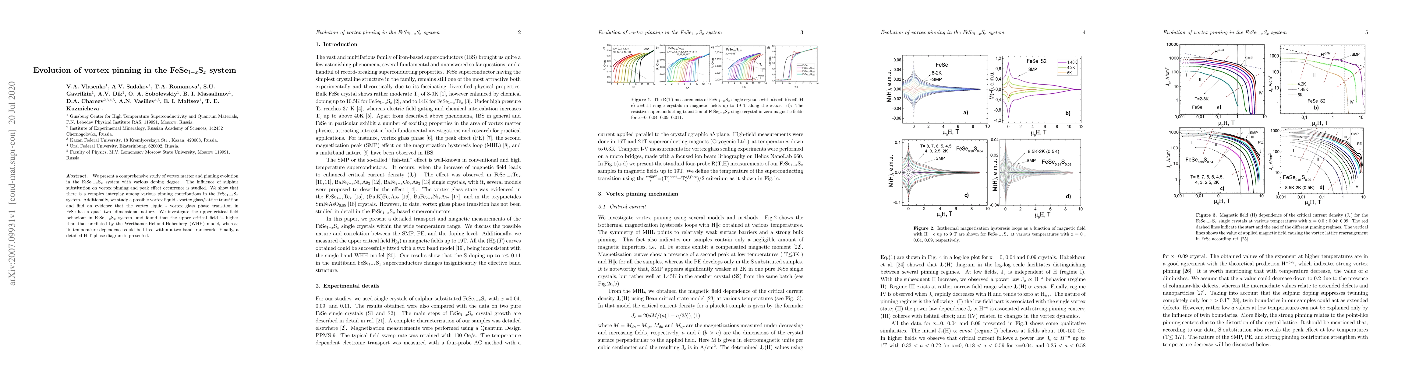 This study investigates vortex pinning and its evolution in FeSe$_{1-x}$S$_x$ with varying sulphur doping, revealing complex pinning interactions and a quasi two-dimensional vortex liquid-vortex glass transition. The upper critical field exceeds predictions from the WHH model but fits a two-band framework.
