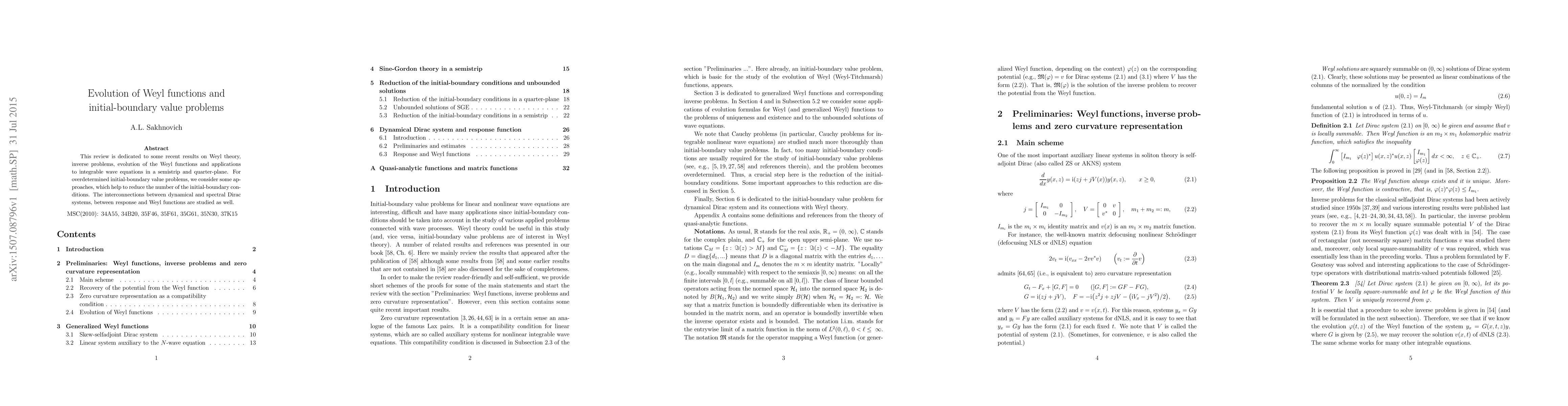 This review explores recent developments in Weyl theory, focusing on the evolution of Weyl functions and their applications to integrable wave equations. It examines methods to reduce the number of initial-boundary conditions for overdetermined problems and investigates the connections between dynamical and spectral Dirac systems.