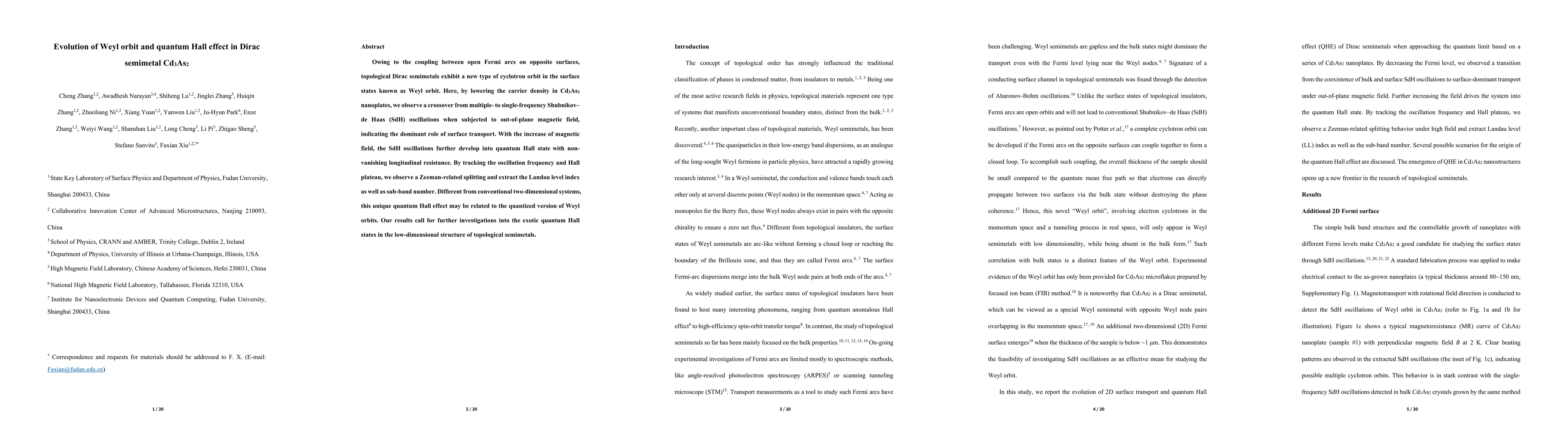 Research in Cd3As2 reveals a new quantum Hall effect related to Weyl orbits in topological semimetals, with non-vanishing longitudinal resistance and quantized version of these orbits.