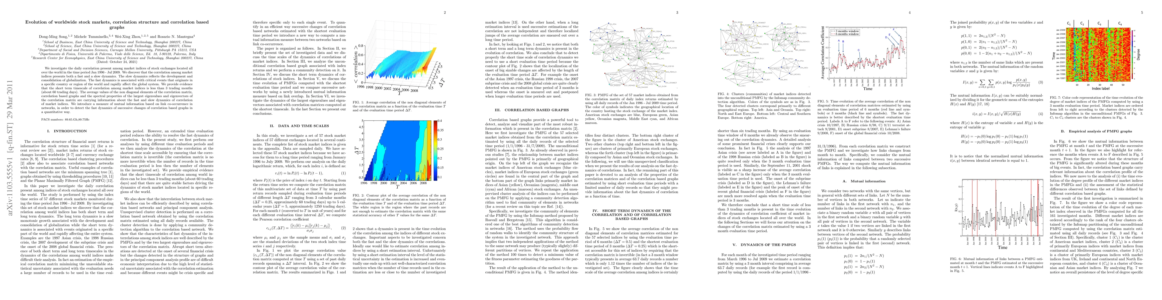 We investigate the daily correlation present among market indices of stock exchanges located all over the world in the time period Jan 1996 - Jul 2009. We discover that the correlation among market indices presents both a fast and a slow dynamics. The slow dynamics reflects the development and consolidation of globalization. The fast dynamics is associated with critical events that originate in a specific country or region of the world and rapidly affect the global system. We provide evidence that the short term timescale of correlation among market indices is less than 3 trading months (about 60 trading days). The average values of the non diagonal elements of the correlation matrix, correlation based graphs and the spectral properties of the largest eigenvalues and eigenvectors of the correlation matrix are carrying information about the fast and slow dynamics of correlation of market indices. We introduce a measure of mutual information based on link co-occurrence in networks, in order to detect the fast dynamics of successive changes of correlation based graphs in a quantitative way.