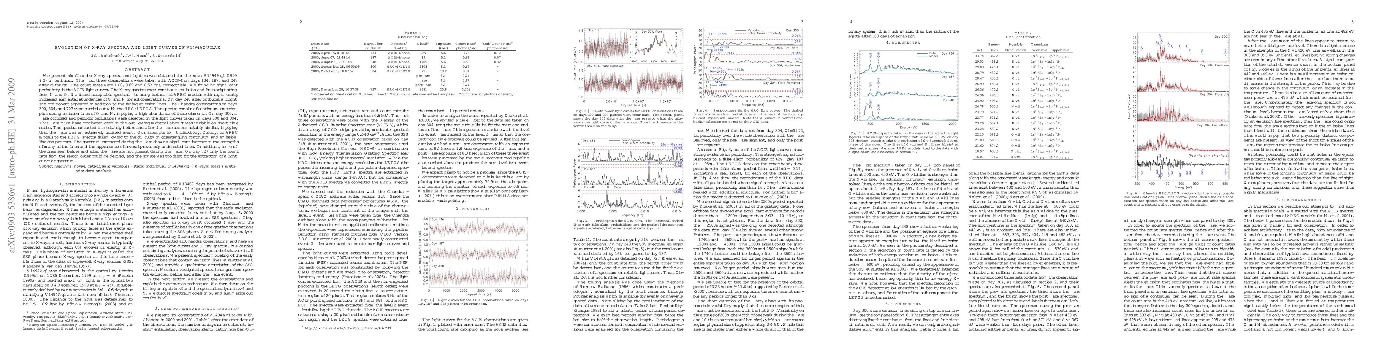This study analyzes six Chandra X-ray spectra and light curves of the nova V1494 Aql, revealing continuum emission and lines from N and O, with increased elemental abundances. A flare on day 300 showed periodic oscillations and significant line variations, indicating it originated deep in the outflowing material.