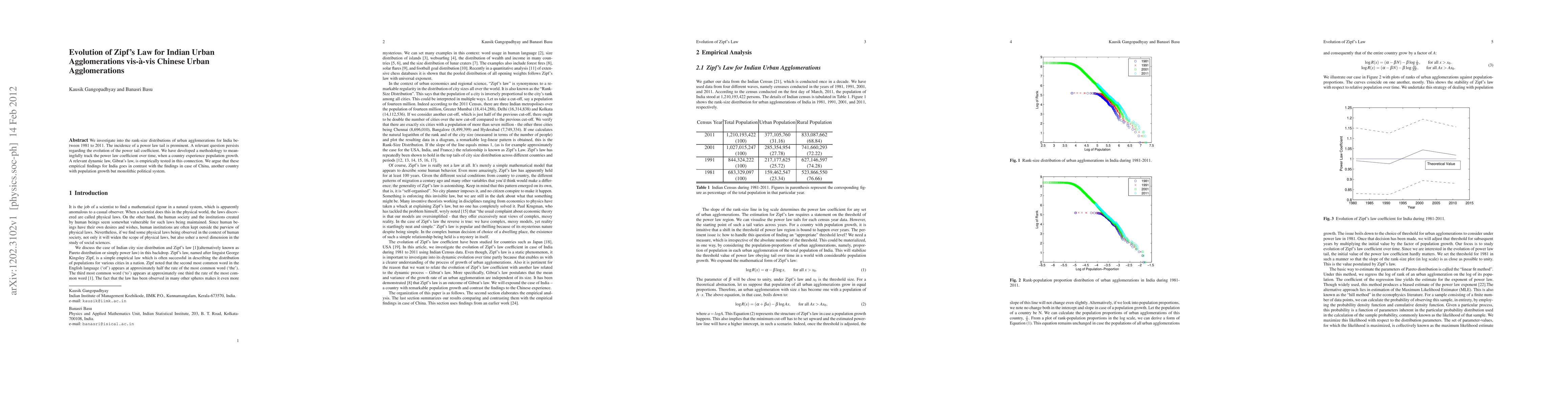 We investigate into the rank-size distributions of urban agglomerations for India between 1981 to 2011. The incidence of a power law tail is prominent. A relevant question persists regarding the evolution of the power tail coefficient. We have developed a methodology to meaningfully track the power law coefficient over time, when a country experience population growth. A relevant dynamic law, Gibrat's law, is empirically tested in this connection. We argue that these empirical findings for India goes in contrast with the findings in case of China, another country with population growth but monolithic political system.