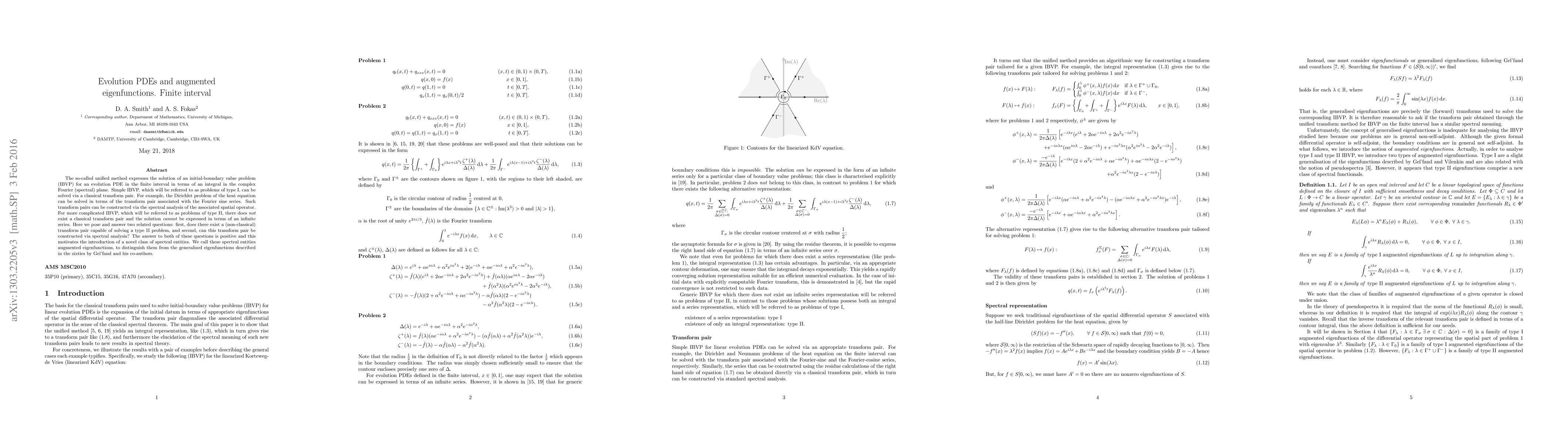 The so-called unified method expresses the solution of an initial-boundary value problem (IBVP) for an evolution PDE in the finite interval in terms of an integral in the complex Fourier (spectral) plane. Simple IBVP, which will be referred to as problems of type~I, can be solved via a classical transform pair. For example, the Dirichlet problem of the heat equation can be solved in terms of the transform pair associated with the Fourier sine series. Such transform pairs can be constructed via the spectral analysis of the associated spatial operator. For more complicated IBVP, which will be referred to as problems of type~II, there does \emph{not} exist a classical transform pair and the solution \emph{cannot} be expressed in terms of an infinite series. Here we pose and answer two related questions: first, does there exist a (non-classical) transform pair capable of solving a type~II problem, and second, can this transform pair be constructed via spectral analysis? The answer to both of these questions is positive and this motivates the introduction of a novel class of spectral entities. We call these spectral entities augmented eigenfunctions, to distinguish them from the generalised eigenfunctions described in the sixties by Gel'fand and his co-authors.