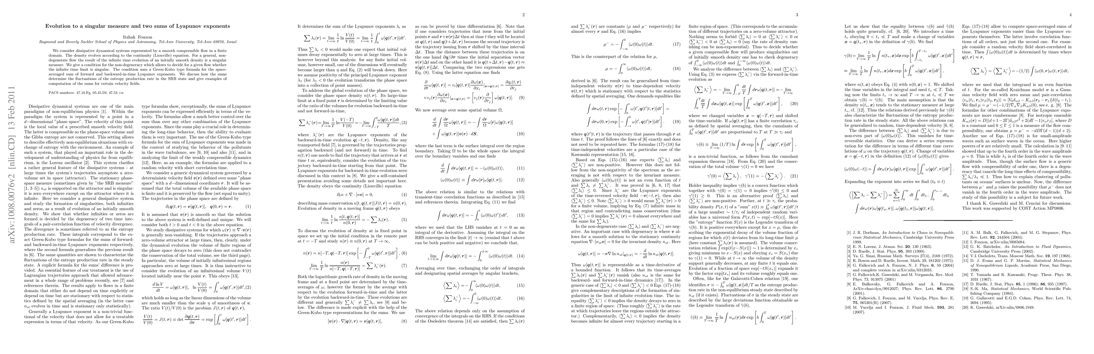 Researchers found that in certain dissipative dynamical systems, the infinite-time evolution of a smooth density results in a singular measure, which can be predicted using Lyapunov exponents. This discovery sheds light on the fluctuations of entropy production rates in statistical steady-state (SRB) states.