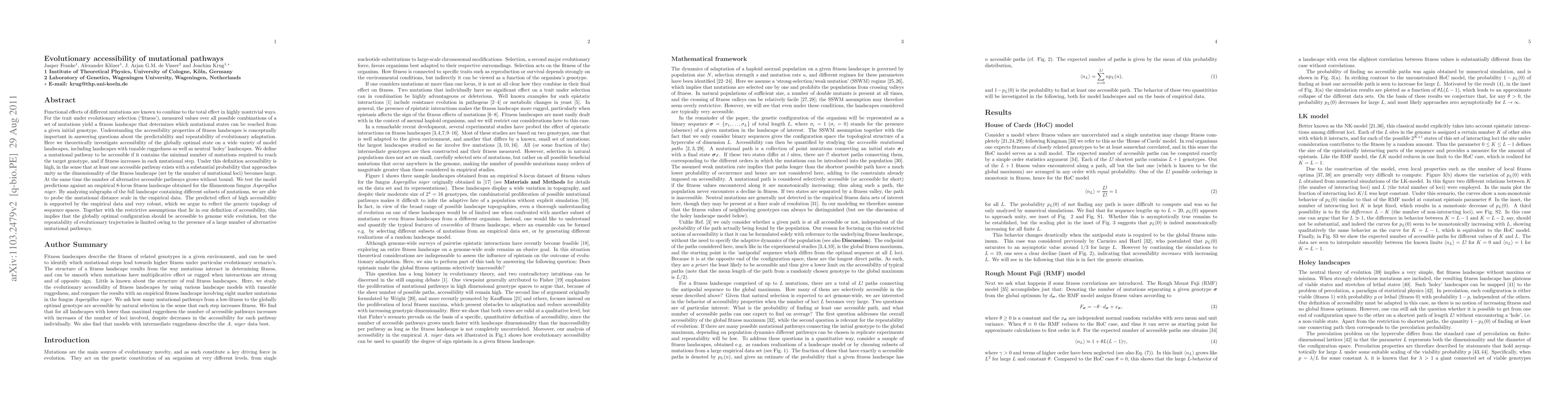 This paper investigates the accessibility of mutational pathways on various fitness landscapes, demonstrating that globally optimal states are often reachable through accessible pathways requiring minimal mutations and increasing fitness. Theoretical predictions of high accessibility are supported by empirical data from an \textit{Aspergillus niger} fitness landscape, suggesting a generic topology of sequence spaces.
