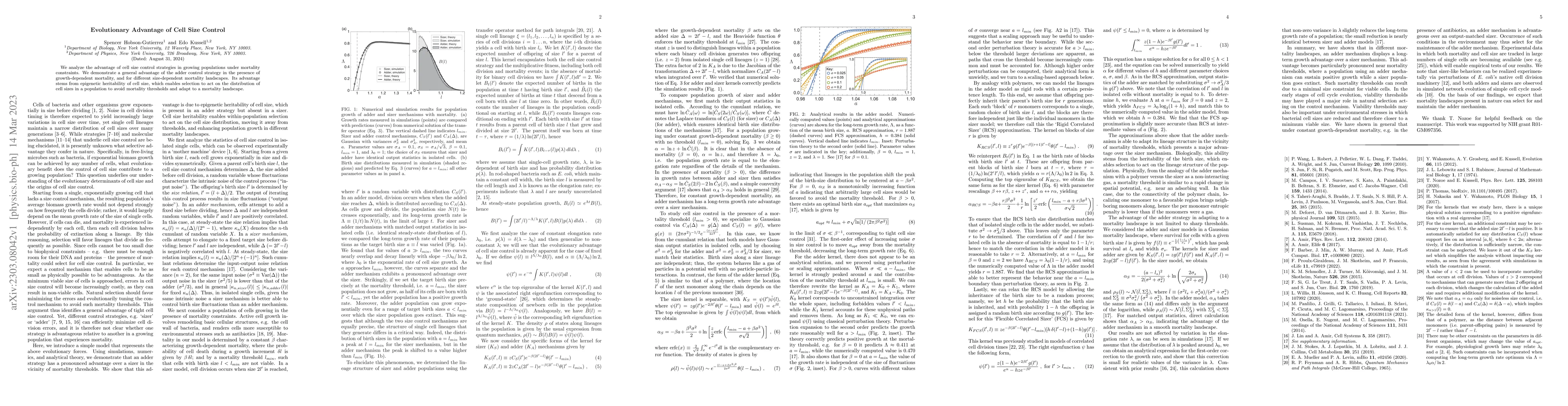 Summary: This study demonstrates that adder control strategies for cell size regulation provide evolutionary advantages in growing populations facing mortality constraints, due to the epigenetic heritability of cell size that allows populations to adapt and avoid mortality thresholds.