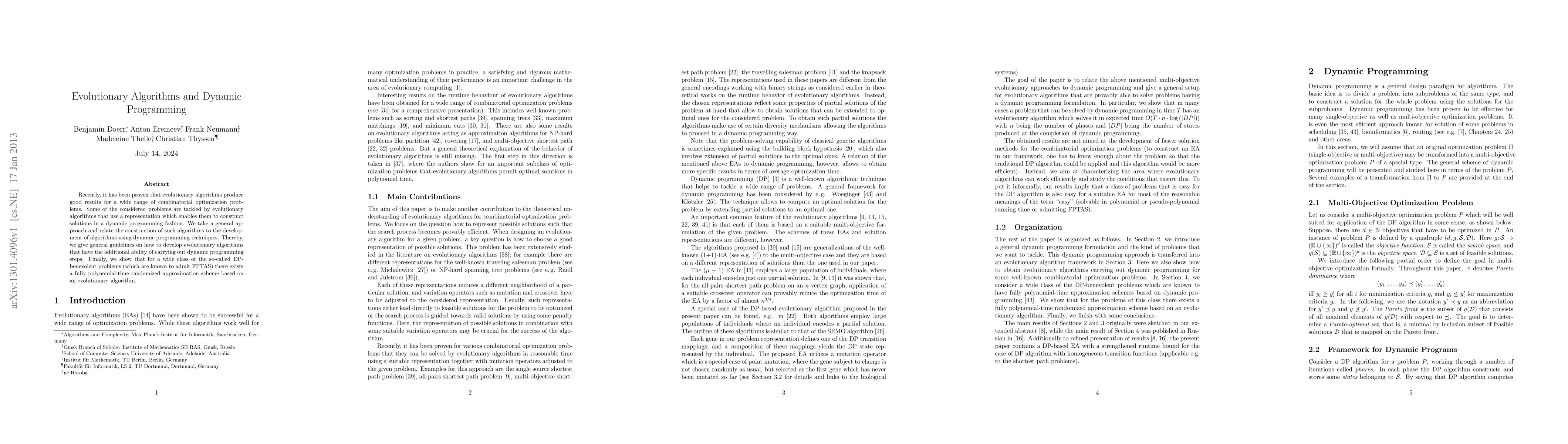 This paper explores the integration of evolutionary algorithms with dynamic programming techniques for solving combinatorial optimization problems, providing guidelines for developing such hybrid algorithms and demonstrating their effectiveness through a FPTAS-based approximation scheme for DP-benevolent problems.