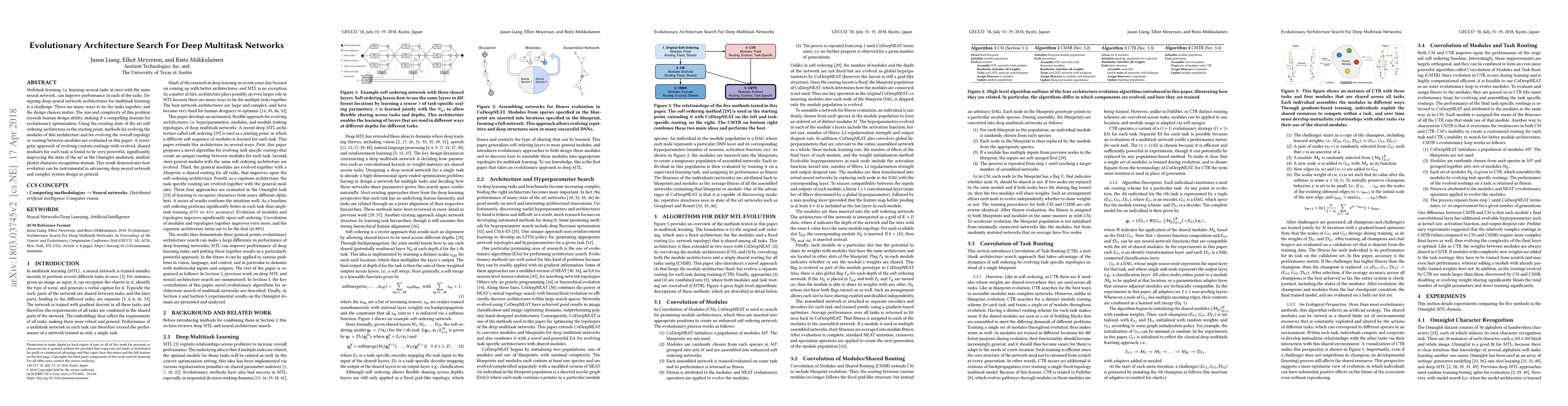 Multitask learning, i.e. learning several tasks at once with the same neural network, can improve performance in each of the tasks. Designing deep neural network architectures for multitask learning is a challenge: There are many ways to tie the tasks together, and the design choices matter. The size and complexity of this problem exceeds human design ability, making it a compelling domain for evolutionary optimization. Using the existing state of the art soft ordering architecture as the starting point, methods for evolving the modules of this architecture and for evolving the overall topology or routing between modules are evaluated in this paper. A synergetic approach of evolving custom routings with evolved, shared modules for each task is found to be very powerful, significantly improving the state of the art in the Omniglot multitask, multialphabet character recognition domain. This result demonstrates how evolution can be instrumental in advancing deep neural network and complex system design in general.