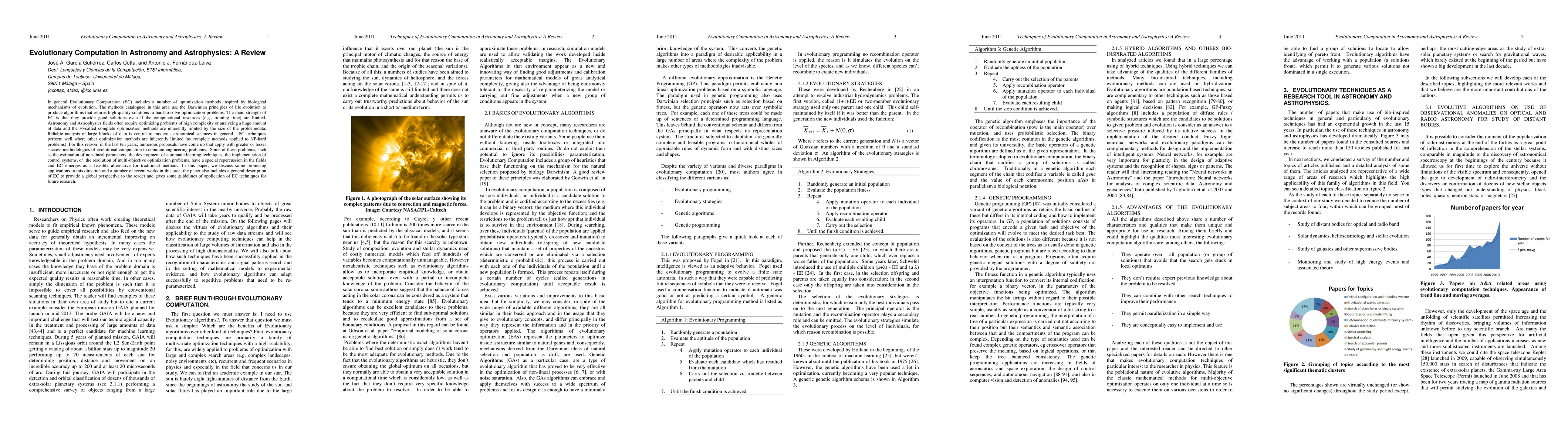 In general Evolutionary Computation (EC) includes a number of optimization methods inspired by biological mechanisms of evolution. The methods catalogued in this area use the Darwinian principles of life evolution to produce algorithms that returns high quality solutions to hard-to-solve optimization problems. The main strength of EC is precisely that they provide good solutions even if the computational resources (e.g., running time) are limited. Astronomy and Astrophysics are two fields that often require optimizing problems of high complexity or analyzing a huge amount of data and the so-called complete optimization methods are inherently limited by the size of the problem/data. For instance, reliable analysis of large amounts of data is central to modern astrophysics and astronomical sciences in general. EC techniques perform well where other optimization methods are inherently limited (as complete methods applied to NP-hard problems), and in the last ten years, numerous proposals have come up that apply with greater or lesser success methodologies of evolutional computation to common engineering problems. Some of these problems, such as the estimation of non-lineal parameters, the development of automatic learning techniques, the implementation of control systems, or the resolution of multi-objective optimization problems, have had (and have) a special repercussion in the fields. For these reasons EC emerges as a feasible alternative for traditional methods. In this paper, we discuss some promising applications in this direction and a number of recent works in this area; the paper also includes a general description of EC to provide a global perspective to the reader and gives some guidelines of application of EC techniques for future research