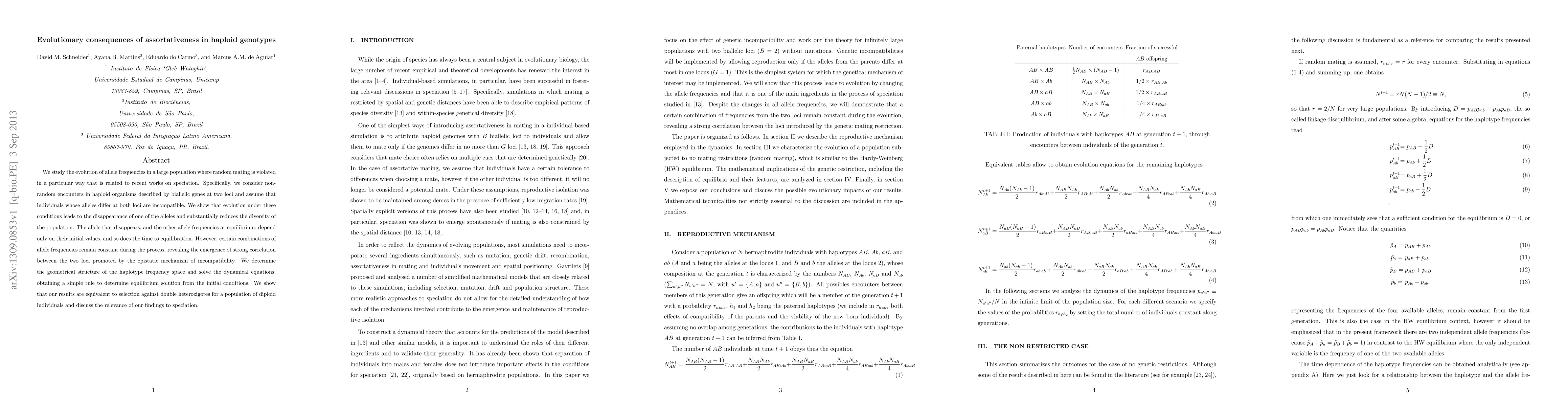 We study the evolution of allele frequencies in a large population where random mating is violated in a particular way that is related to recent works on speciation. Specifically, we consider non-random encounters in haploid organisms described by biallelic genes at two loci and assume that individuals whose alleles differ at both loci are incompatible. We show that evolution under these conditions leads to the disappearance of one of the alleles and substantially reduces the diversity of the population. The allele that disappears, and the other allele frequencies at equilibrium, depend only on their initial values, and so does the time to equilibration. However, certain combinations of allele frequencies remain constant during the process, revealing the emergence of strong correlation between the two loci promoted by the epistatic mechanism of incompatibility. We determine the geometrical structure of the haplotype frequency space and solve the dynamical equations, obtaining a simple rule to determine equilibrium solution from the initial conditions. We show that our results are equivalent to selection against double heterozigotes for a population of diploid individuals and discuss the relevance of our findings to speciation.