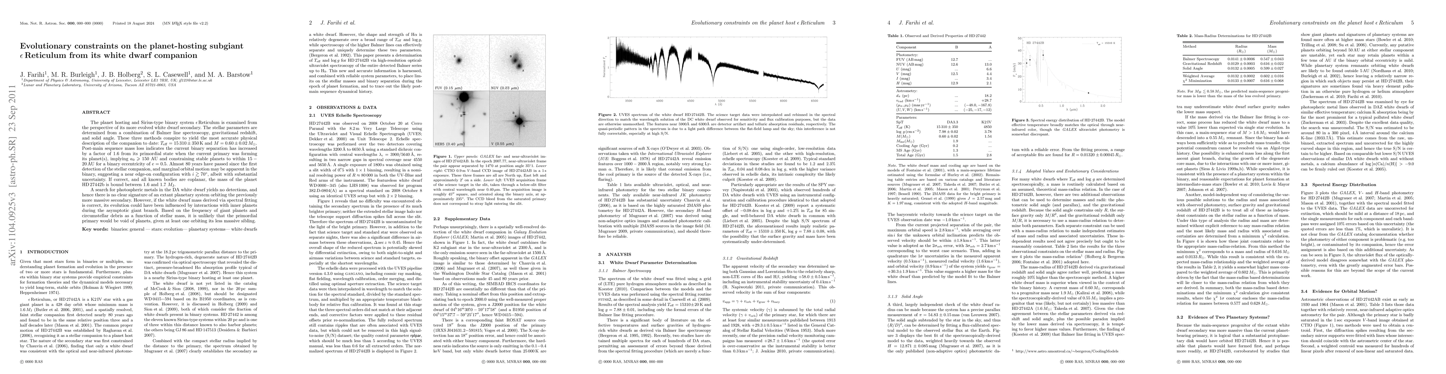 The binary system epsilon Reticulum has a planet-hosting subgiant star with a white dwarf companion, with constraints suggesting stable planets within 15-20 AU from the secondary, or nearly edge-on configurations.