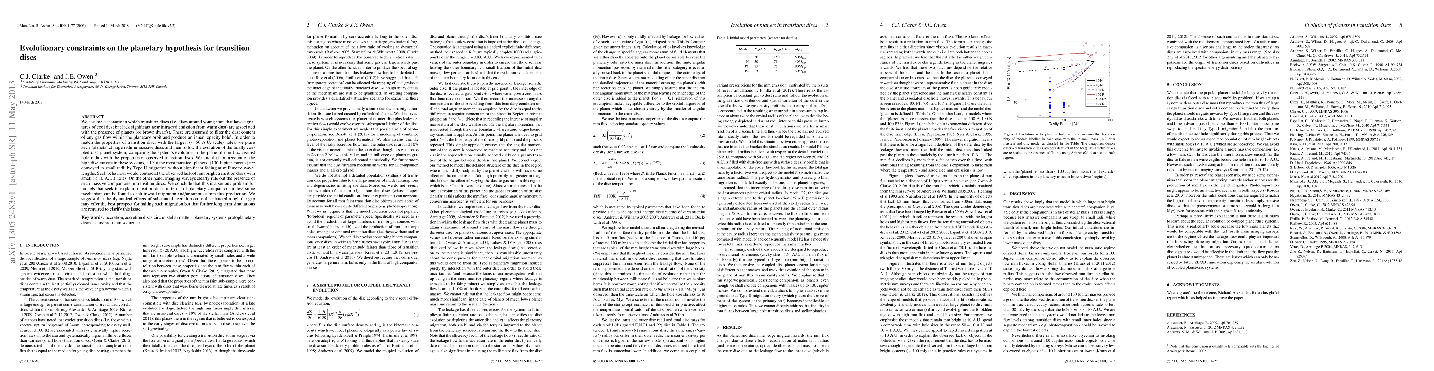 This paper investigates the planetary hypothesis for transition discs, finding that most planets in massive discs migrate inward, contradicting observations. The study suggests that halting migration or suppressing mm flux production is necessary to explain the lack of mm bright transition discs with small holes.
