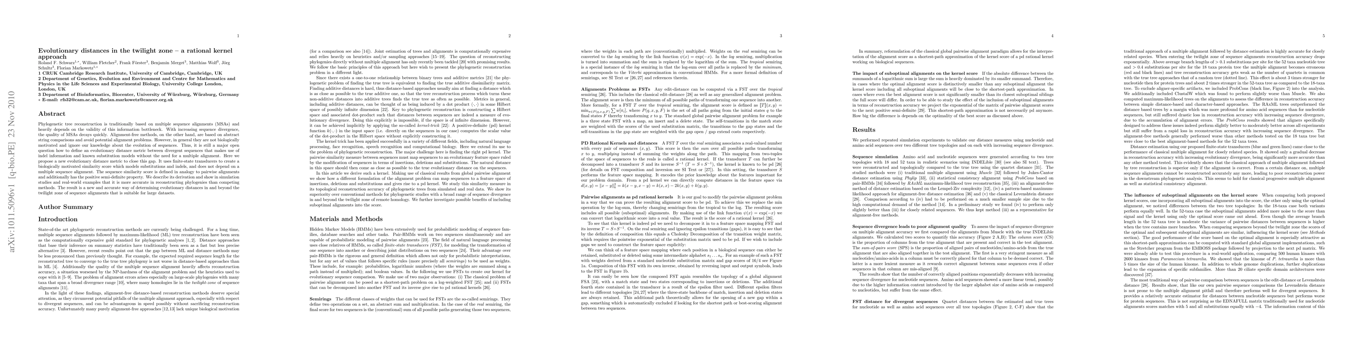 This paper proposes a new evolutionary distance metric using finite-state transducers to create a biologically motivated similarity score for divergent sequences, avoiding the need for multiple sequence alignments. It demonstrates improved accuracy in phylogenetic tree reconstruction compared to existing methods.