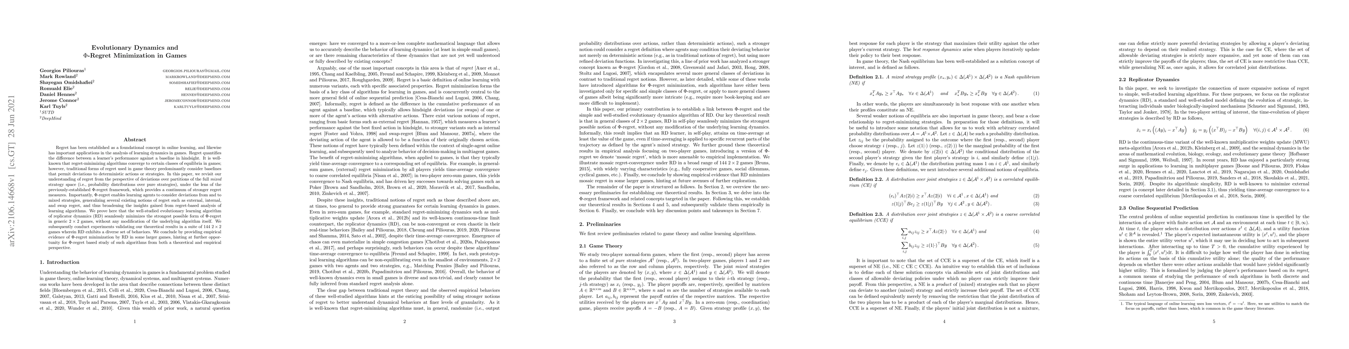 Regret has been established as a foundational concept in online learning, and likewise has important applications in the analysis of learning dynamics in games. Regret quantifies the difference between a learner's performance against a baseline in hindsight. It is well-known that regret-minimizing algorithms converge to certain classes of equilibria in games; however, traditional forms of regret used in game theory predominantly consider baselines that permit deviations to deterministic actions or strategies. In this paper, we revisit our understanding of regret from the perspective of deviations over partitions of the full \emph{mixed} strategy space (i.e., probability distributions over pure strategies), under the lens of the previously-established $\Phi$-regret framework, which provides a continuum of stronger regret measures. Importantly, $\Phi$-regret enables learning agents to consider deviations from and to mixed strategies, generalizing several existing notions of regret such as external, internal, and swap regret, and thus broadening the insights gained from regret-based analysis of learning algorithms. We prove here that the well-studied evolutionary learning algorithm of replicator dynamics (RD) seamlessly minimizes the strongest possible form of $\Phi$-regret in generic $2 \times 2$ games, without any modification of the underlying algorithm itself. We subsequently conduct experiments validating our theoretical results in a suite of 144 $2 \times 2$ games wherein RD exhibits a diverse set of behaviors. We conclude by providing empirical evidence of $\Phi$-regret minimization by RD in some larger games, hinting at further opportunity for $\Phi$-regret based study of such algorithms from both a theoretical and empirical perspective.