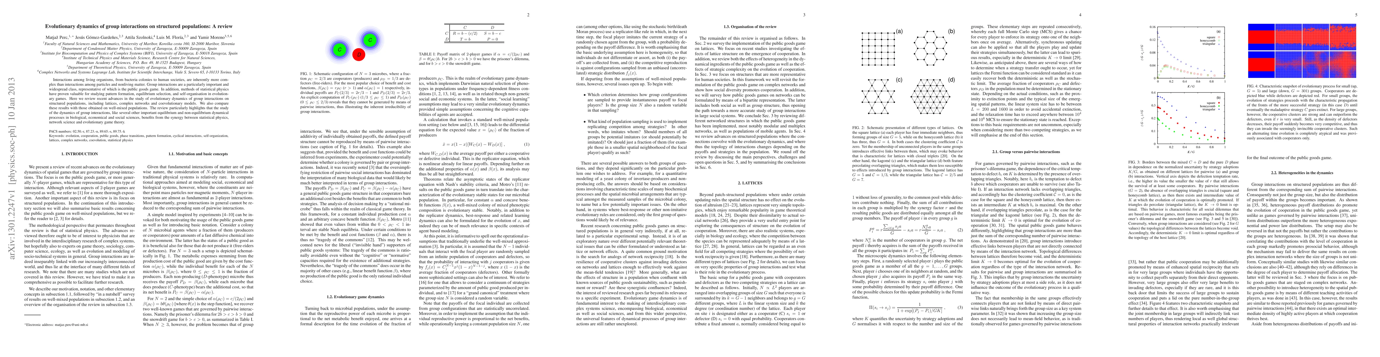 This paper reviews recent advances in understanding the evolutionary dynamics of group interactions in structured populations, emphasizing the role of statistical physics, network science, and evolutionary game theory. It highlights how structured environments, such as lattices and complex networks, influence group dynamics compared to well-mixed populations.