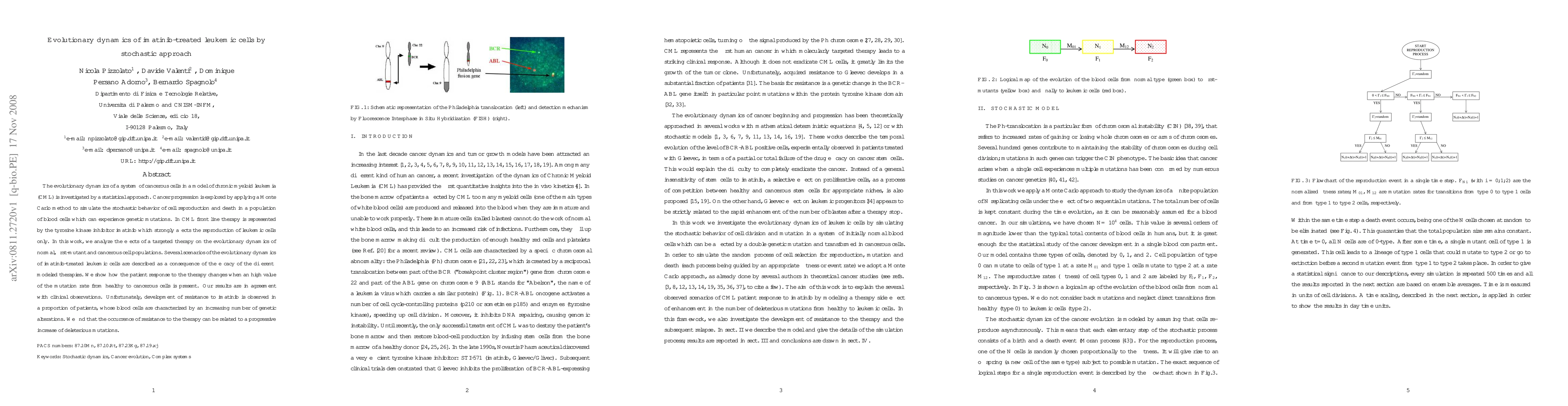 The evolutionary dynamics of a system of cancerous cells in a model of chronic myeloid leukemia (CML) is investigated by a statistical approach. Cancer progression is explored by applying a Monte Carlo method to simulate the stochastic behavior of cell reproduction and death in a population of blood cells which can experience genetic mutations. In CML front line therapy is represented by the tyrosine kinase inhibitor imatinib which strongly affects the reproduction of leukemic cells only. In this work, we analyze the effects of a targeted therapy on the evolutionary dynamics of normal, first-mutant and cancerous cell populations. Several scenarios of the evolutionary dynamics of imatinib-treated leukemic cells are described as a consequence of the efficacy of the different modeled therapies. We show how the patient response to the therapy changes when an high value of the mutation rate from healthy to cancerous cells is present. Our results are in agreement with clinical observations. Unfortunately, development of resistance to imatinib is observed in a proportion of patients, whose blood cells are characterized by an increasing number of genetic alterations. We find that the occurrence of resistance to the therapy can be related to a progressive increase of deleterious mutations.