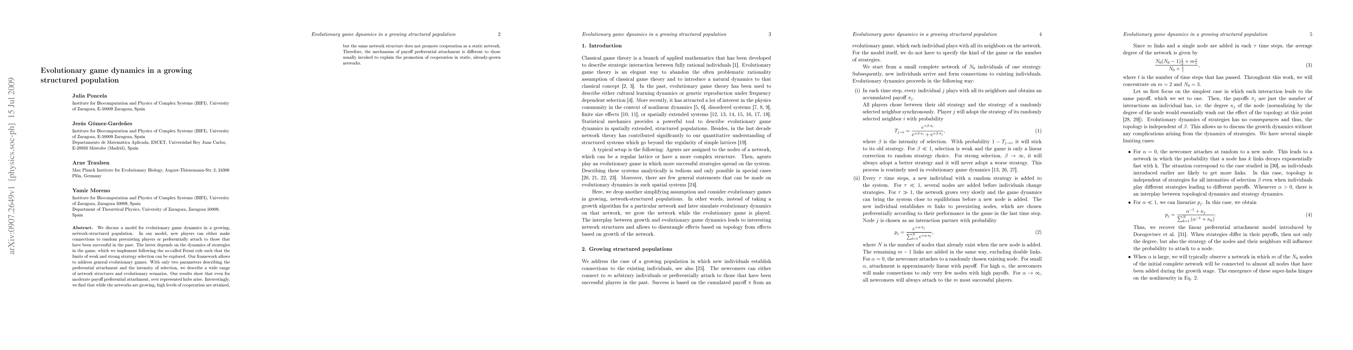 This paper models evolutionary game dynamics in a growing, network-structured population where new players can preferentially attach to successful ones, leading to the emergence of hubs. It finds that while growing networks can promote high cooperation levels, this mechanism differs from those that promote cooperation in static networks.