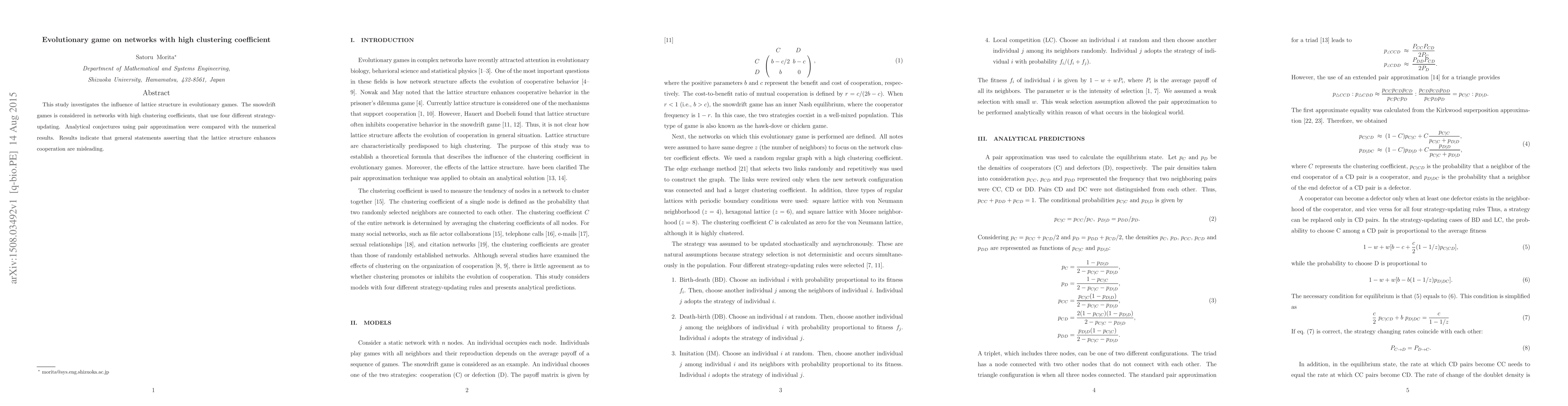 This study investigates the influence of lattice structure in evolutionary games. The snowdrift games is considered in networks with high clustering coefficients, that use four different strategy-updating. Analytical conjectures using pair approximation were compared with the numerical results. Results indicate that general statements asserting that the lattice structure enhances cooperation are misleading.