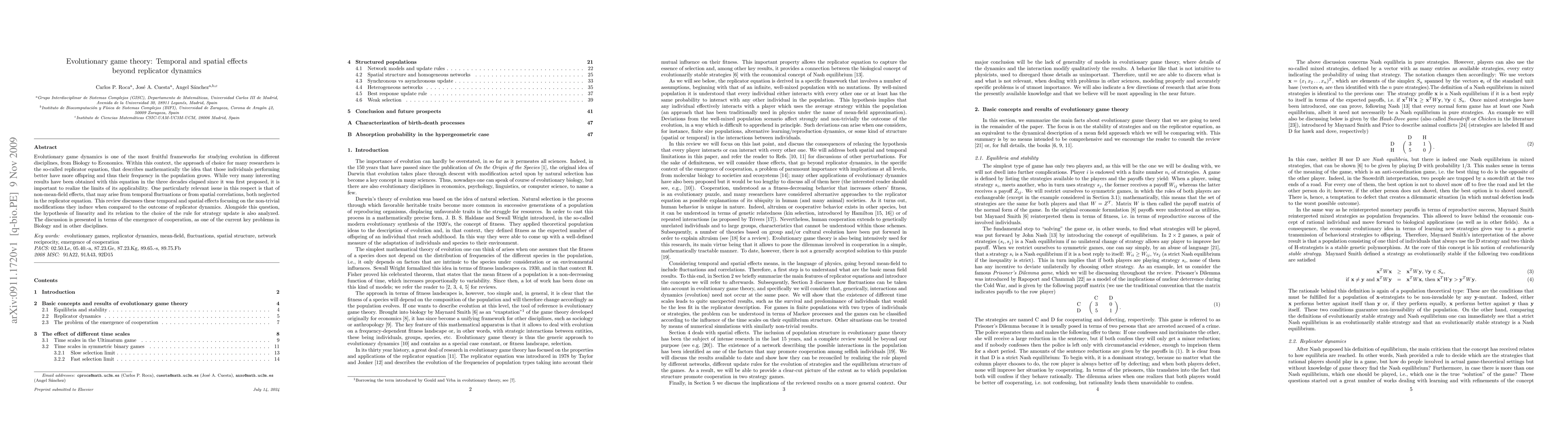 This paper explores how temporal and spatial effects in evolutionary game theory can lead to different outcomes from the traditional replicator equation, with implications for cooperation emergence.