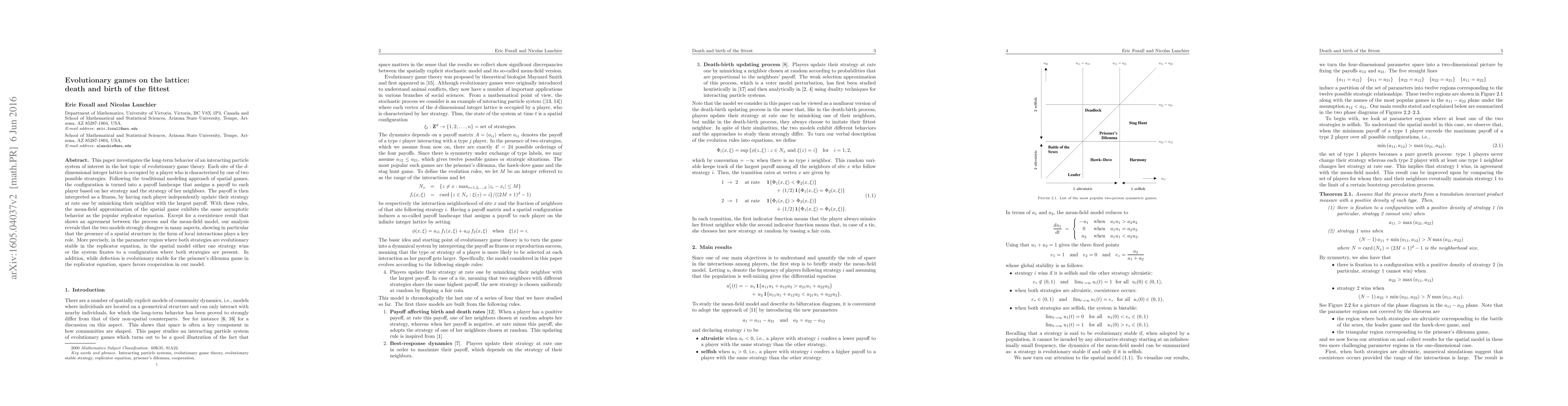 This research explores an evolutionary game theory model on a lattice, revealing that while the mean-field approximation aligns with the replicator equation in some aspects, spatial structure significantly influences outcomes. Contrary to the replicator equation, the model shows cooperation thrives over defection in prisoner's dilemma games, and one strategy or stable coexistence dominates over both strategies' presence.