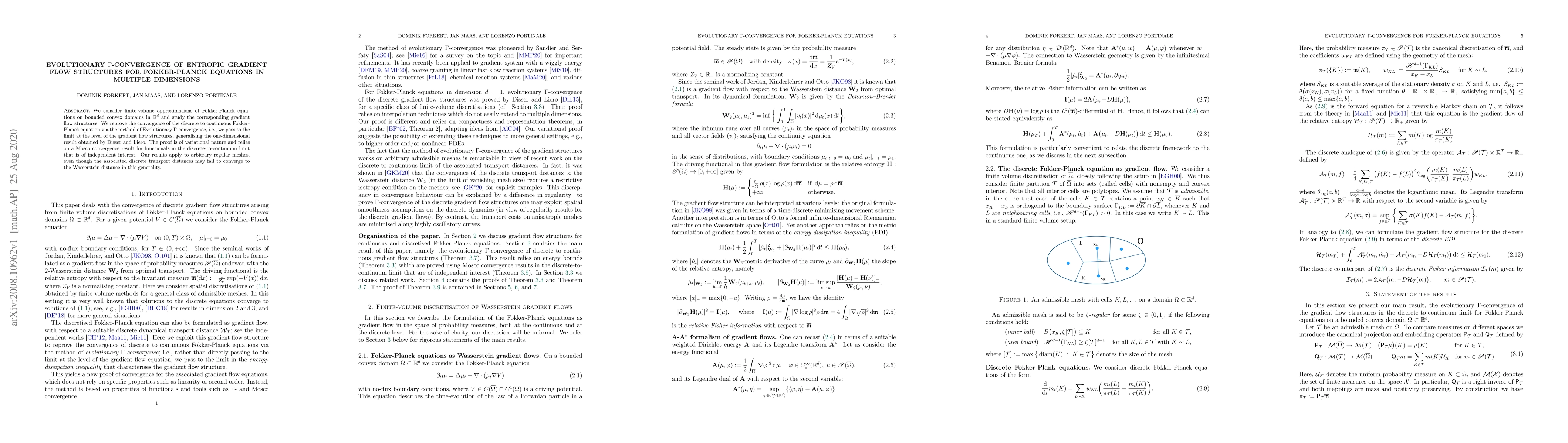 This paper explores the Evolutionary $\Gamma$-convergence of finite-volume approximations for Fokker-Planck equations in multiple dimensions, proving the convergence of discrete to continuous forms via gradient flow structures. The study extends the one-dimensional result and uses variational methods and Mosco convergence for functionals.