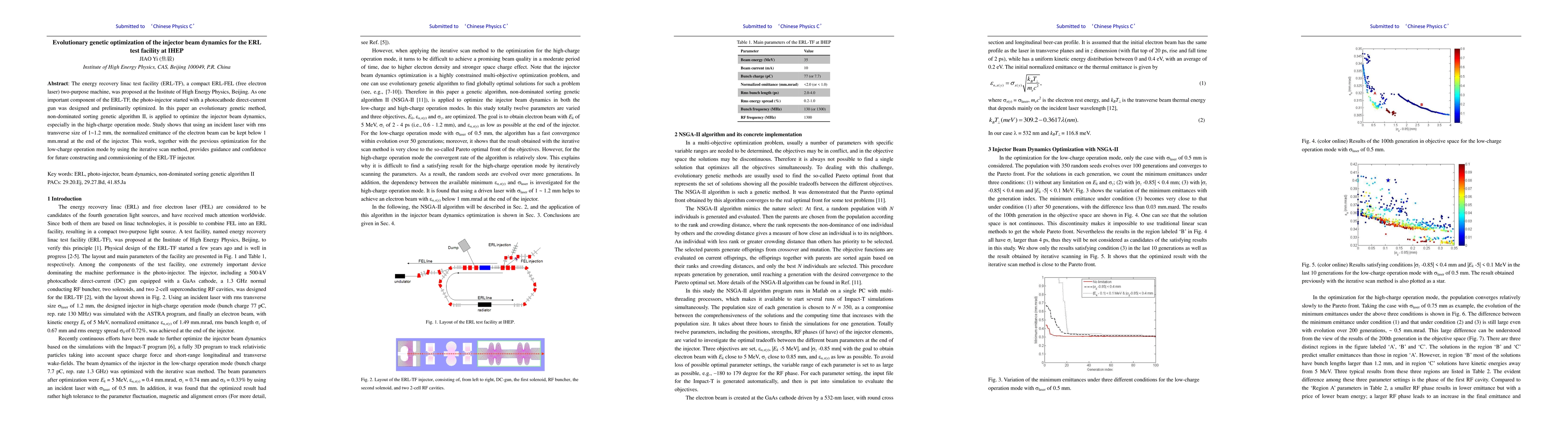 This paper optimizes the injector beam dynamics of the ERL test facility at IHEP using an evolutionary genetic algorithm, achieving a normalized emittance below 1 mm.mrad in high-charge operation mode. The method provides valuable guidance for future construction and commissioning of the ERL-TF injector.
