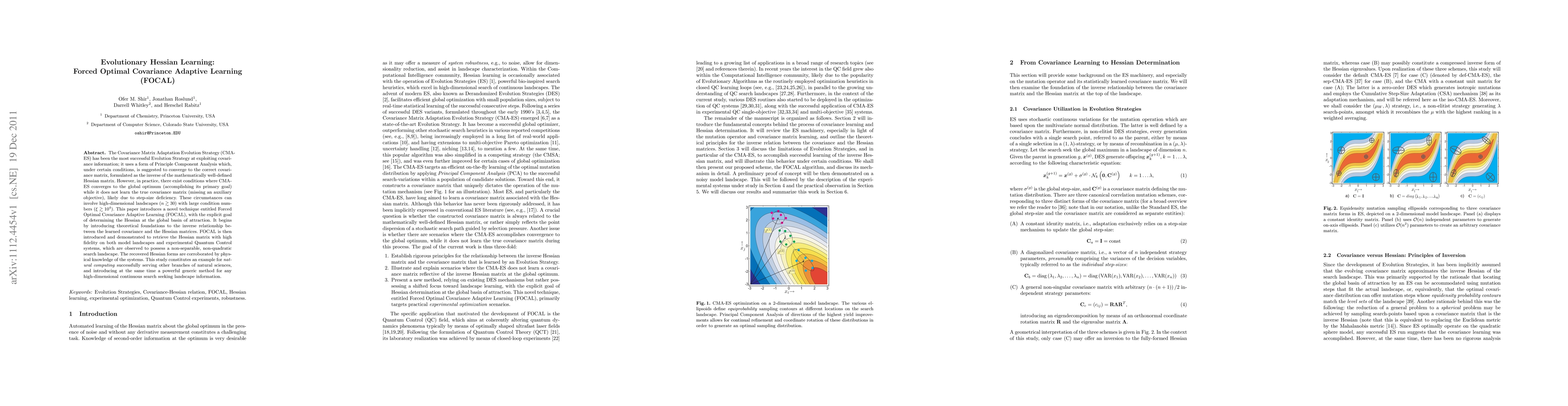 The Covariance Matrix Adaptation Evolution Strategy (CMA-ES) has been the most successful Evolution Strategy at exploiting covariance information; it uses a form of Principle Component Analysis which, under certain conditions, is suggested to converge to the correct covariance matrix, formulated as the inverse of the mathematically well-defined Hessian matrix. However, in practice, there exist conditions where CMA-ES converges to the global optimum (accomplishing its primary goal) while it does not learn the true covariance matrix (missing an auxiliary objective), likely due to step-size deficiency. These circumstances can involve high-dimensional landscapes with large condition numbers. This paper introduces a novel technique entitled Forced Optimal Covariance Adaptive Learning (FOCAL), with the explicit goal of determining the Hessian at the global basin of attraction. It begins by introducing theoretical foundations to the inverse relationship between the learned covariance and the Hessian matrices. FOCAL is then introduced and demonstrated to retrieve the Hessian matrix with high fidelity on both model landscapes and experimental Quantum Control systems, which are observed to possess a non-separable, non-quadratic search landscape. The recovered Hessian forms are corroborated by physical knowledge of the systems. This study constitutes an example for Natural Computing successfully serving other branches of natural sciences, and introducing at the same time a powerful generic method for any high-dimensional continuous search seeking landscape information.
